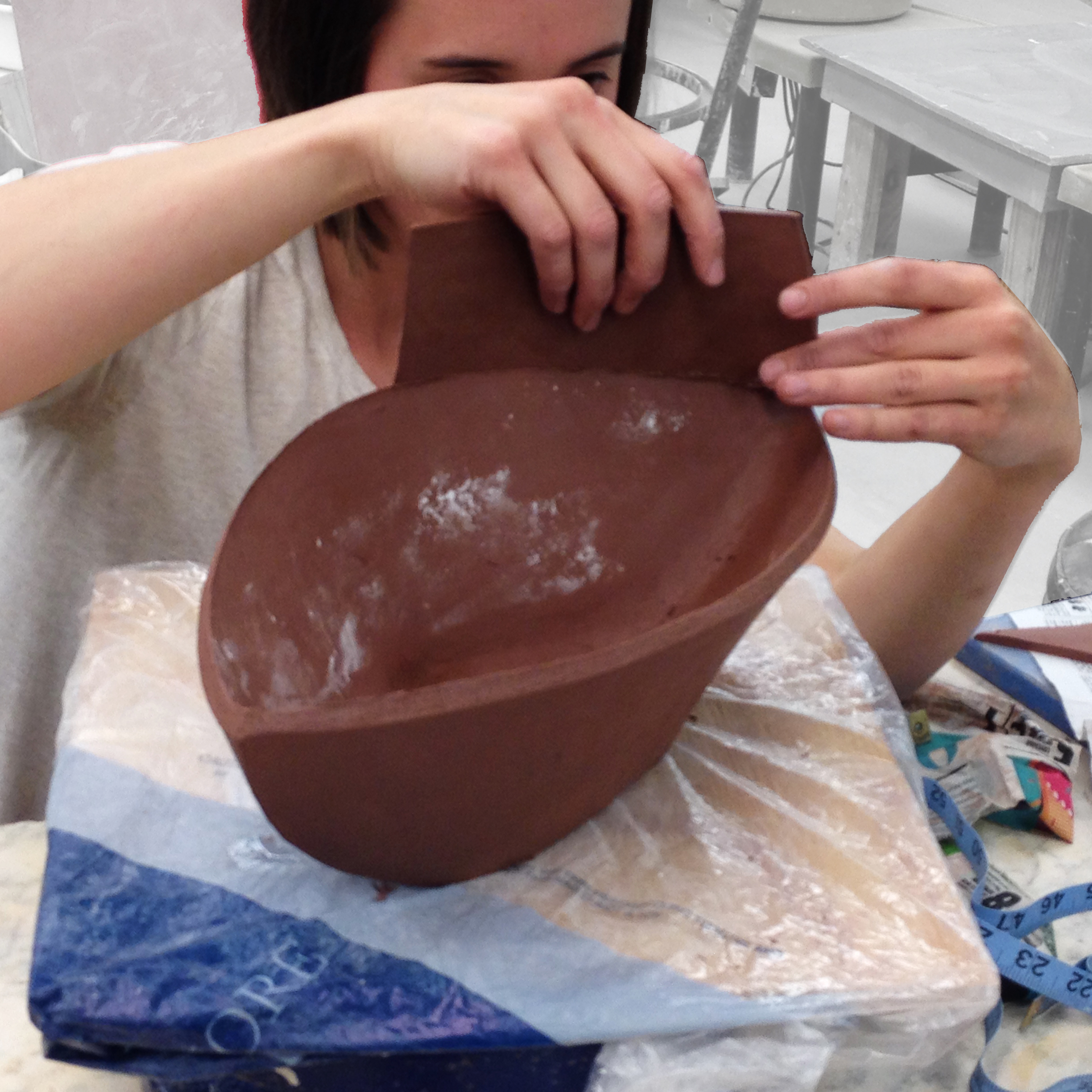 Slab Building Demo PieceThis adult class, which spanned 12 weeks, offered an intimate setting for me to share some of my own means and methods for constructing slab-built vessels. -