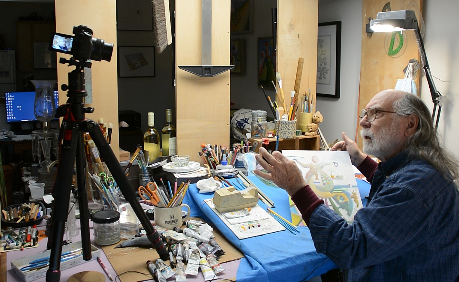 The second is filming the ‘B Roll’, which are additional film clips and still-shots used to support the story line such as in-progress working on creating art, framing artwork, etc. These can be without dialog or separate informative dialog added/overlaid later.