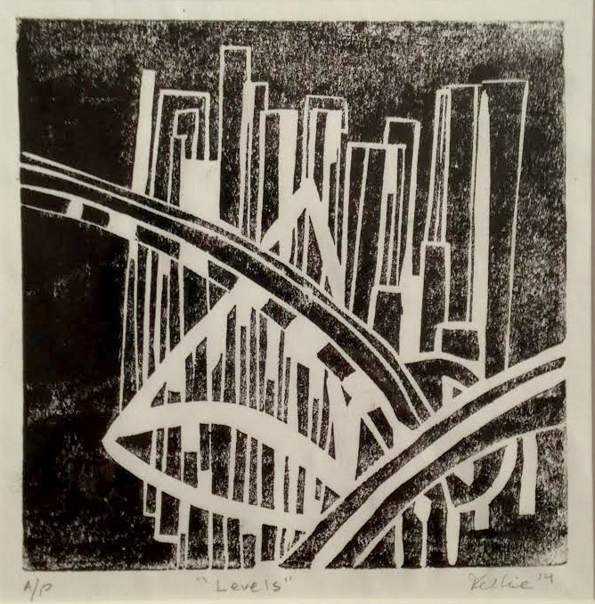 LevelsLevels, 5 1/2″ x 5 1/2″, Linoleum Relief Print, 2014