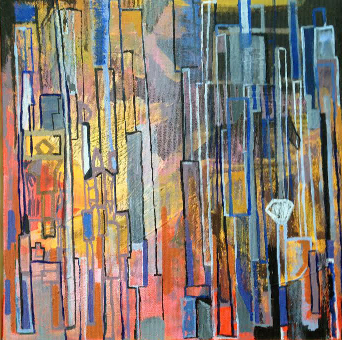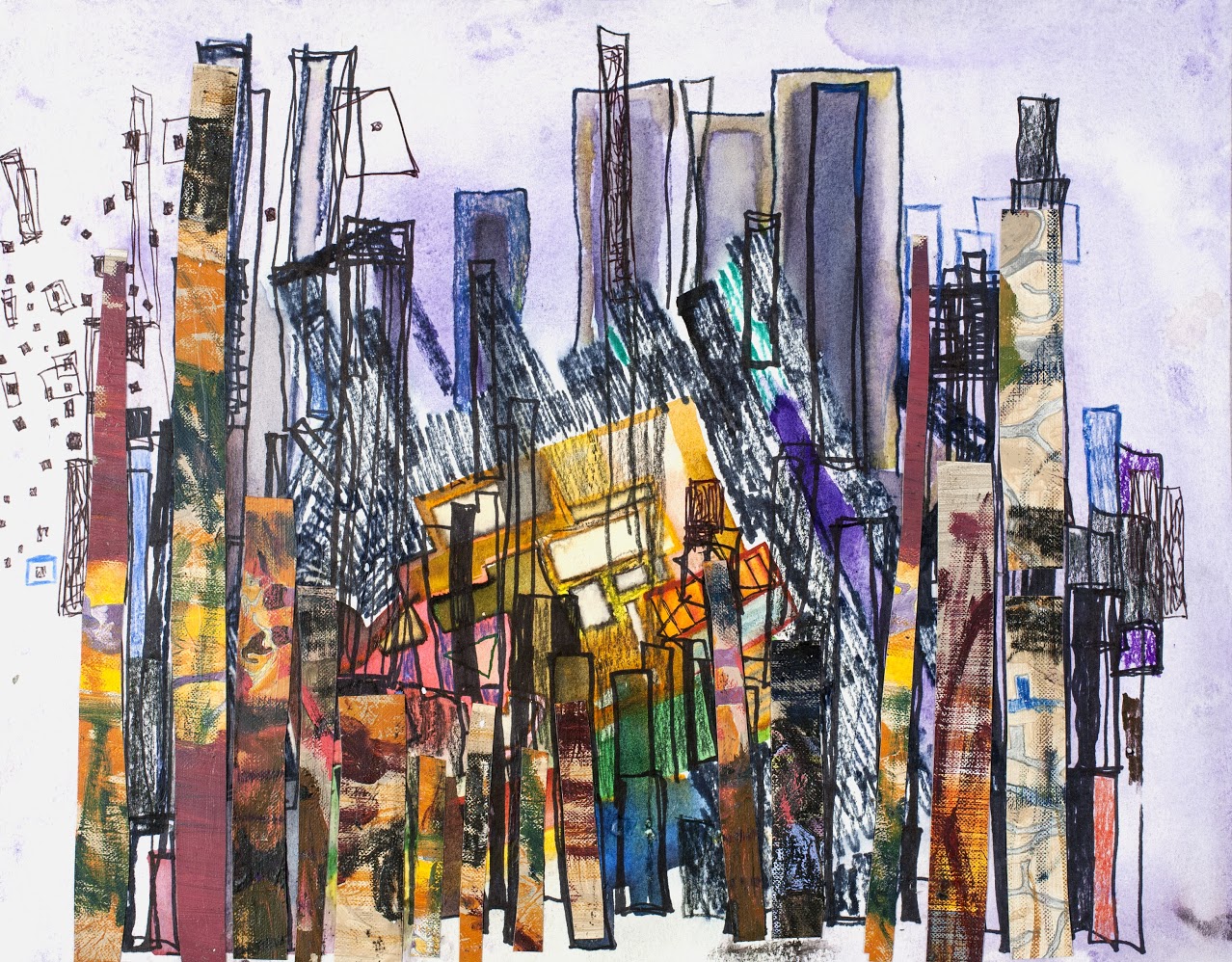 NYC, April 2020, Au-dessus de la villeNYC, April 2020, Au-dessus de la ville, 16″ x 20″, Mixed Media on Canvas, 2020