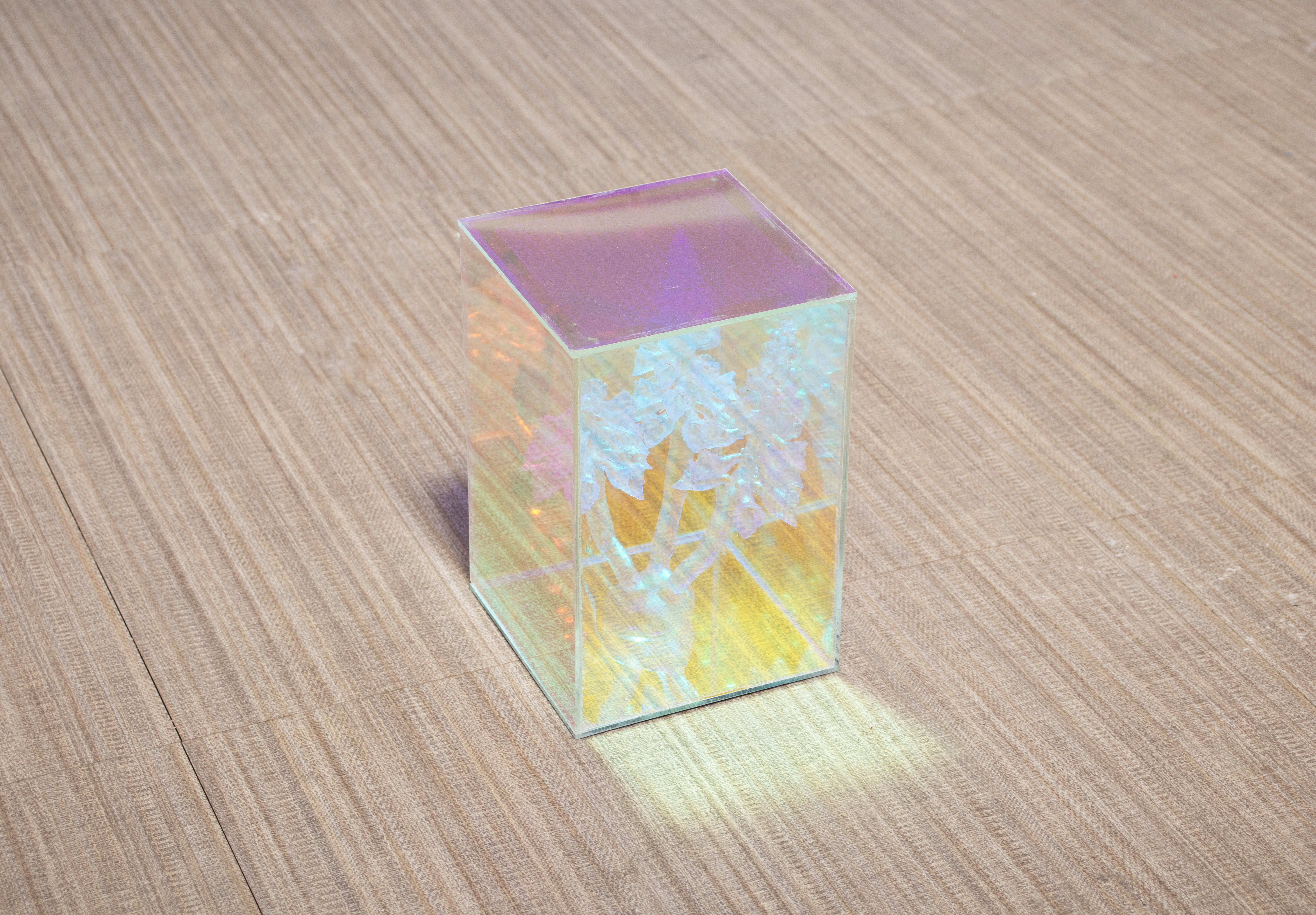 Endosymbiont3D Printed Resin inside Laser Cut Iridescent Acrylic Vitrine