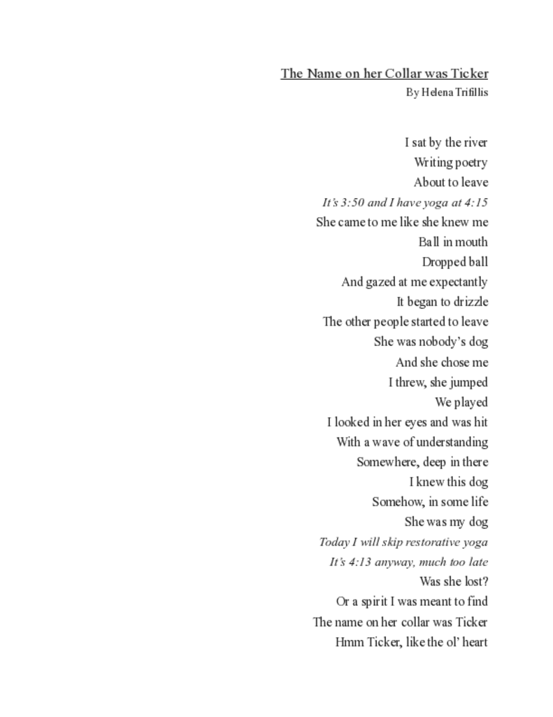 The Name on her Collar was Ticker