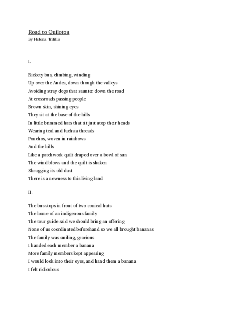 I had gone to Ecuador a few days before my group trip to the Galapagos Islands started so I could get a lay of the land. I ended up being mugged in Quito and getting my phone and some bank cards stolen. I made a friend, another American girl named Olivia, and she leant me $100. Determined not to let the experience bring me down, I spent $50 on an excursion to Quilotoa, a giant crater lake. Part of the excursion involved visiting an indigenous family’s home in the Andes mountains en route to Quilotoa. I remember making sure to bring my notebook so I could document my experience since I didn’t have a phone to take photos.