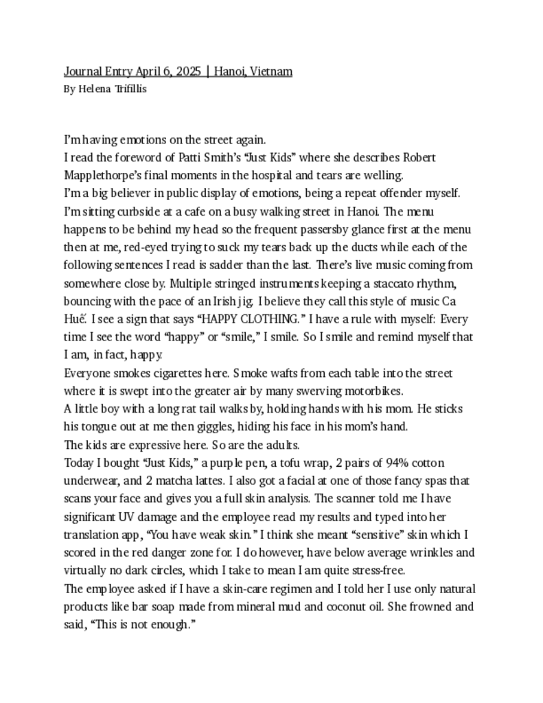 This is a true story. Usually when I take a psychedelic, I write about my experience after the fact but with this one, I’m pretty sure I wrote the whole thing on the plane during the acid trip. Observing, eavesdropping, and furtively scribbling every thought down in my notebook. I was flying from San Jose back to Baltimore to visit my family for Christmas and had a layover in Houston. I remember I was too anxious to try to smuggle an acid tab past airport security so I took it during my Uber ride to the airport, hoping it would kick in right as I boarded the flight, and lo and behold, it did.