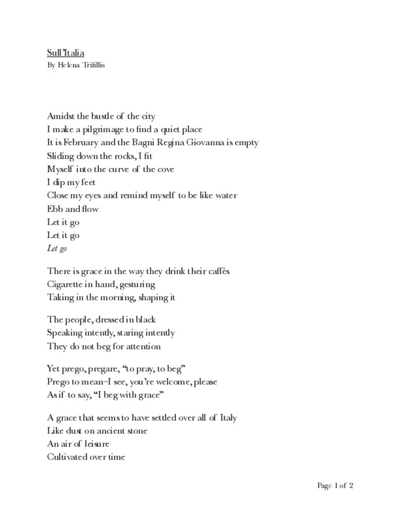 I had the day off work so I decided to visit my favorite cemetery in Santa Cruz, Evergreen Cemetery, with the intention of doing some writing. I noticed a homeless person’s tent set up in the northernmost part of the cemetery. All was silent for an hour or so, but then I heard a man’s voice coming from the tent, he was yelling “Day one! Call the police, it's only day one! Day one! Day one!” He kept repeating “Day one” over and over and I thought, I need to incorporate this into my poem.