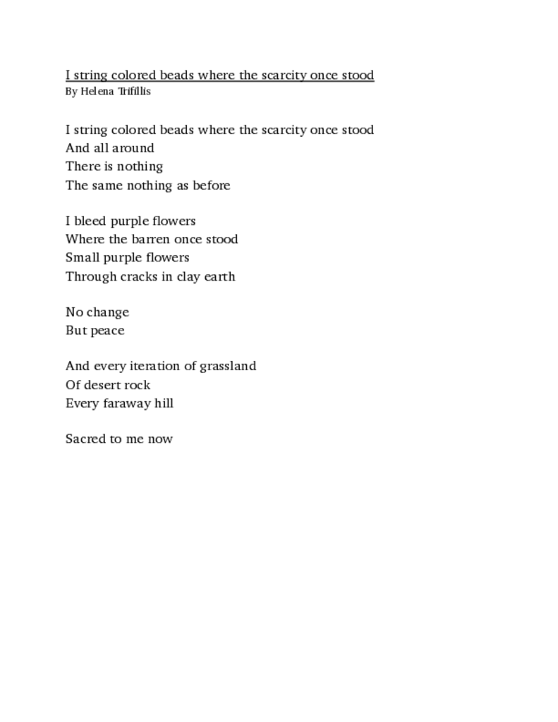 I string colored beads where the scarcity once stood