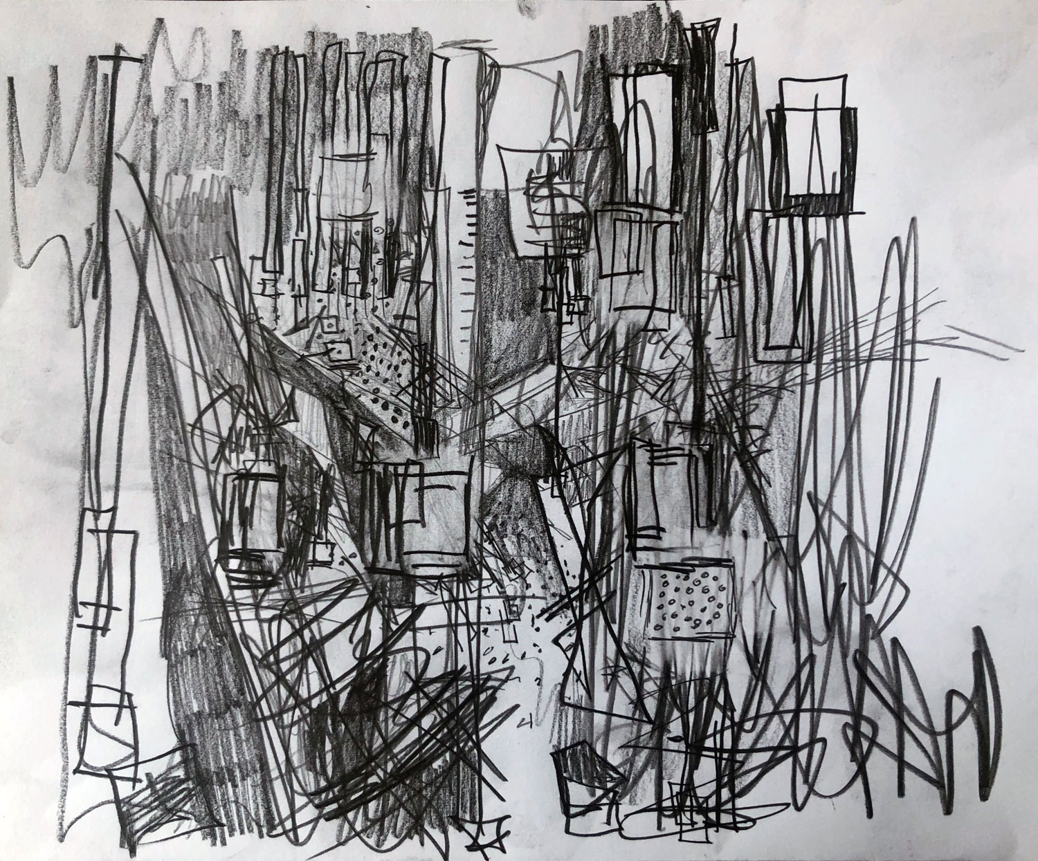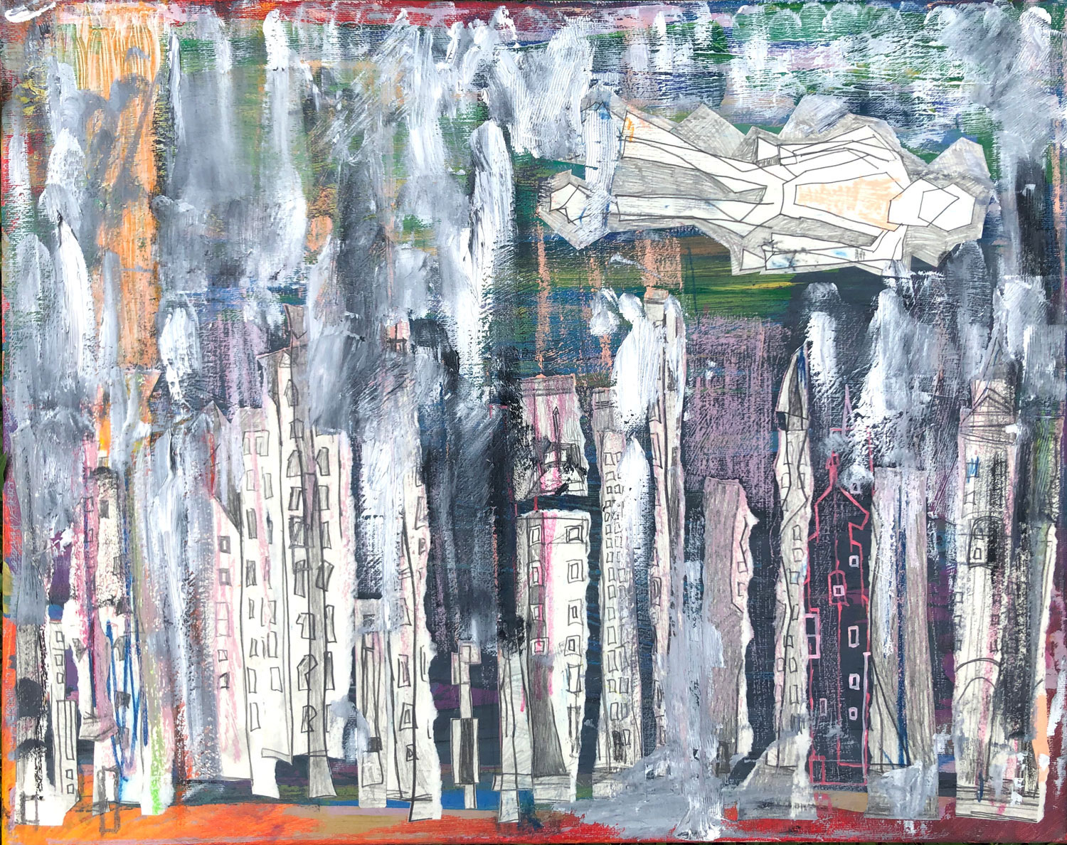 NYC, April 2020, Au-dessus de la ville, 16″ x 20″, Mixed Media, 2020