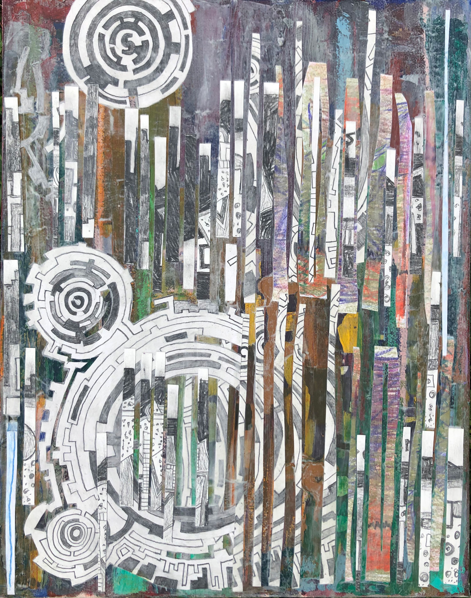 Collisions, 11″ x 14″, Mixed Media, 2020