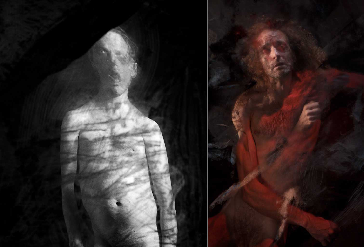 Using a red filter on the main light of one model, the skin seems raw, perhaps even stripped of flesh. The eyes appear to be gouged out, and I see this image as the mythic figure of Oedipus, known for blinding himself in the Greek tragedy....