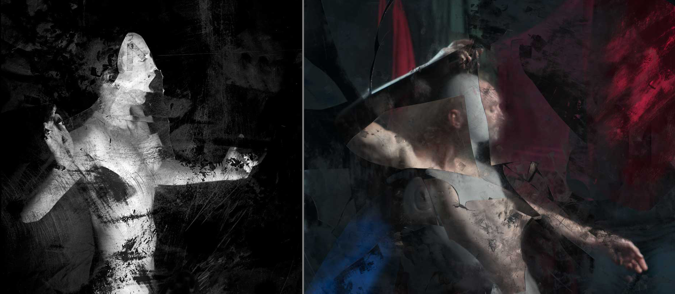 I see the figures in my work from 2012 - 2016 as archetypal embodiments of mythological narrative. They feel like psychological dramas that we either identify with personally or recognize internally. Nearly all of the images throughout these years were created in the studio and working with the mirrors, often times merging the figures together in ways that illustrate a recognizable myth- as in the likeness of Oedipus in Untitled (#09-04-13-287)- or elicit a recognizable state of mind- as in the despair evoked in Untitled (#4-24-12-012). All of the images from this period are quite visceral, and as if tracing further and further back, become more raw, more primitive in essence as I continued this journey. Eventually, the merging of figures became less seamless and more hard edged, moving on to 2016 where the hard edged lines and shapes of the mirror shards become important aspects of piecing them together. The strange amalgamation of these beings got even weirder when I began experimenting with replacing one model with mannequins in various states of completeness - some missing arms, some missing heads, legs, etc. Sometimes, what is seen of the actual figure in an image is quite minimal - as in Untitled (# 06-08-16-429) 2016 - yet the fullness of the body and its gesture remains.