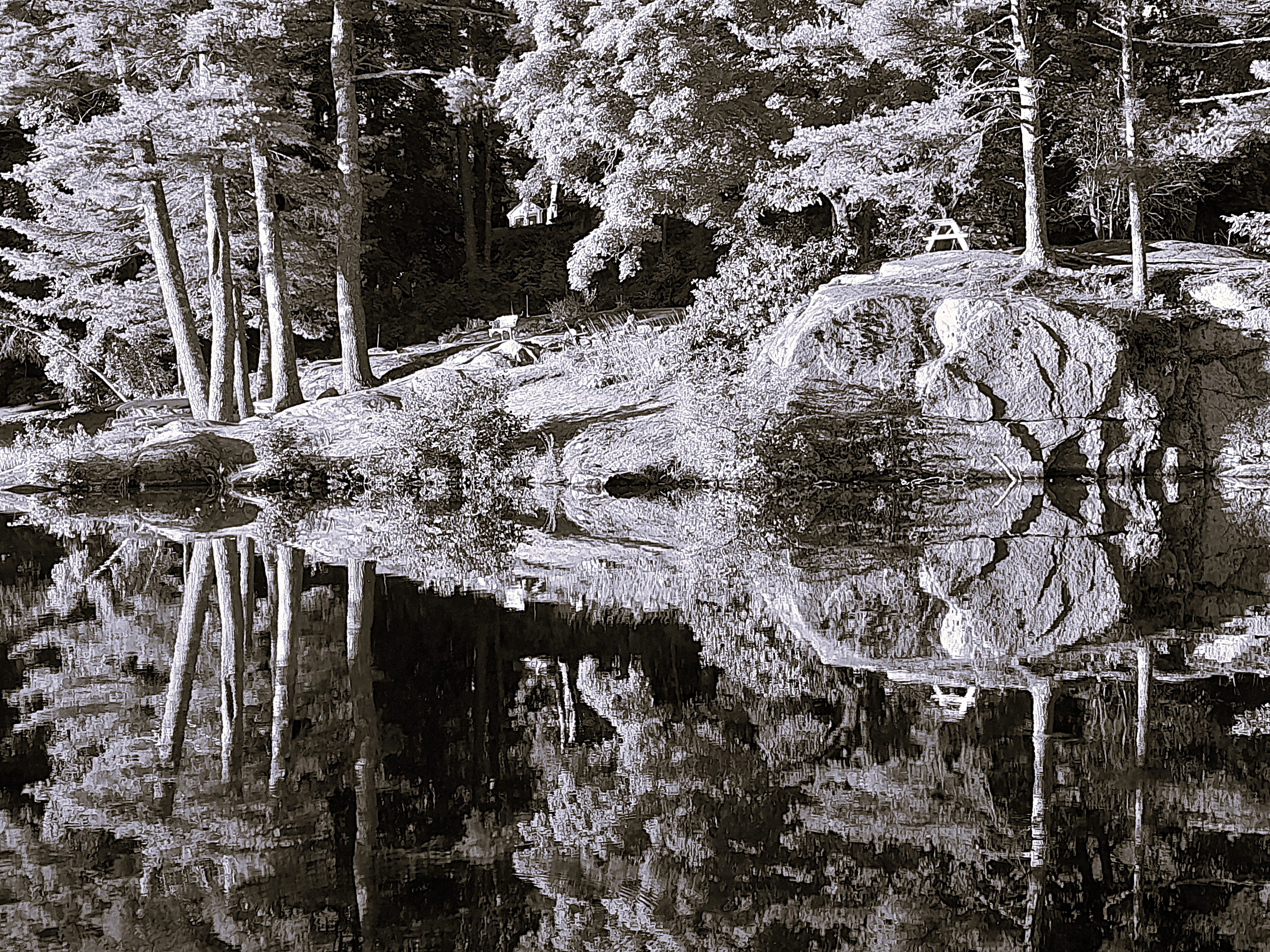 Reflection Across the PondA View from the Inn, a black and white study, 2023