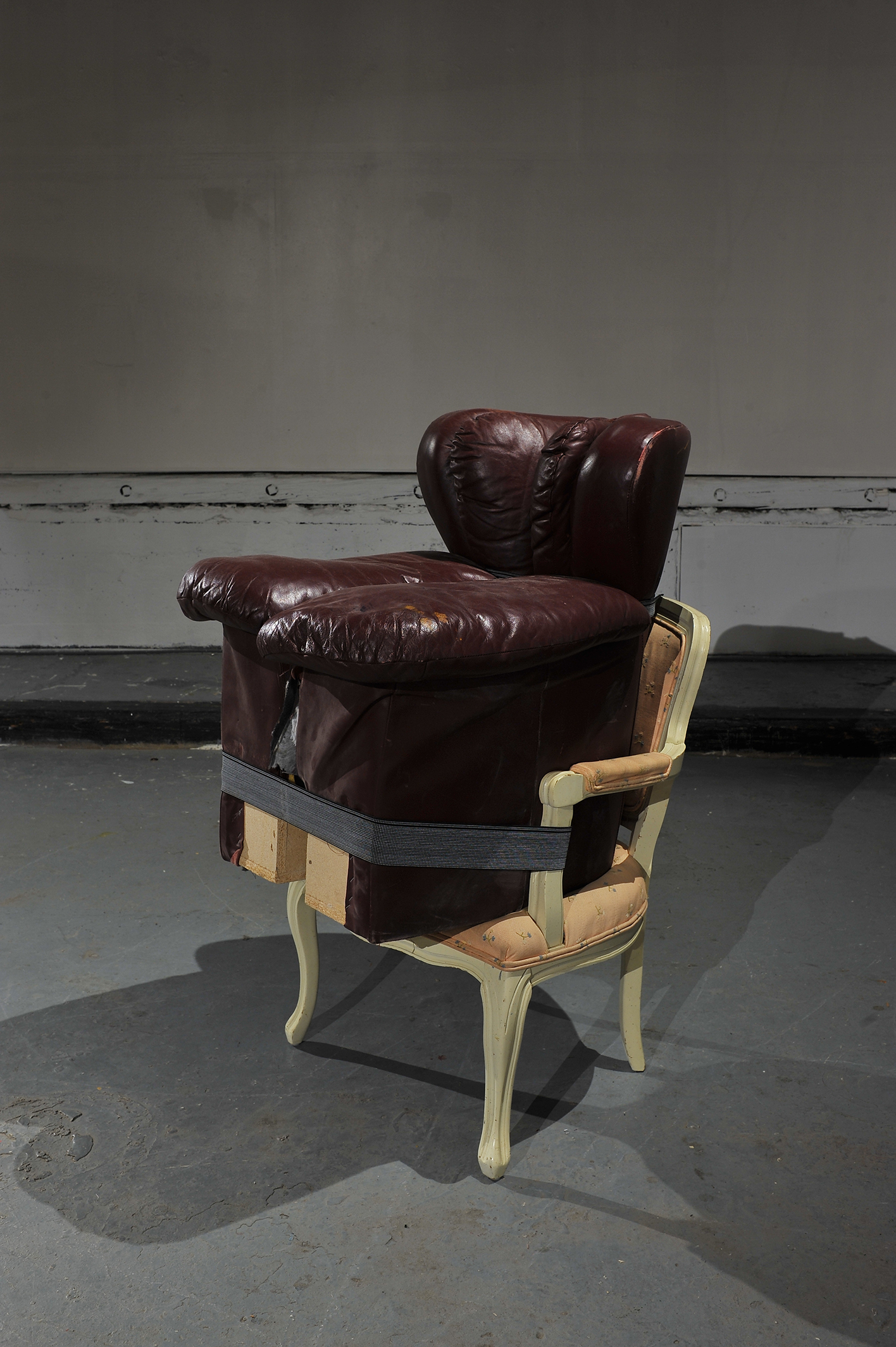 The sculptures were created towards the end of my thesis and after. This body of work is comprised of found furniture and fractured objects from the city streets of Baltimore. The level of decay evident in each object dictates the extent to which I formally intervene to develop sculptures, paintings, and hybridized three dimensional works of art. Methodically exploring degrading structures, bolstering support mechanisms, and considering elements of weight mass, volume, color, and texture of an object drives the aesthetic reflection in my studio practice.
