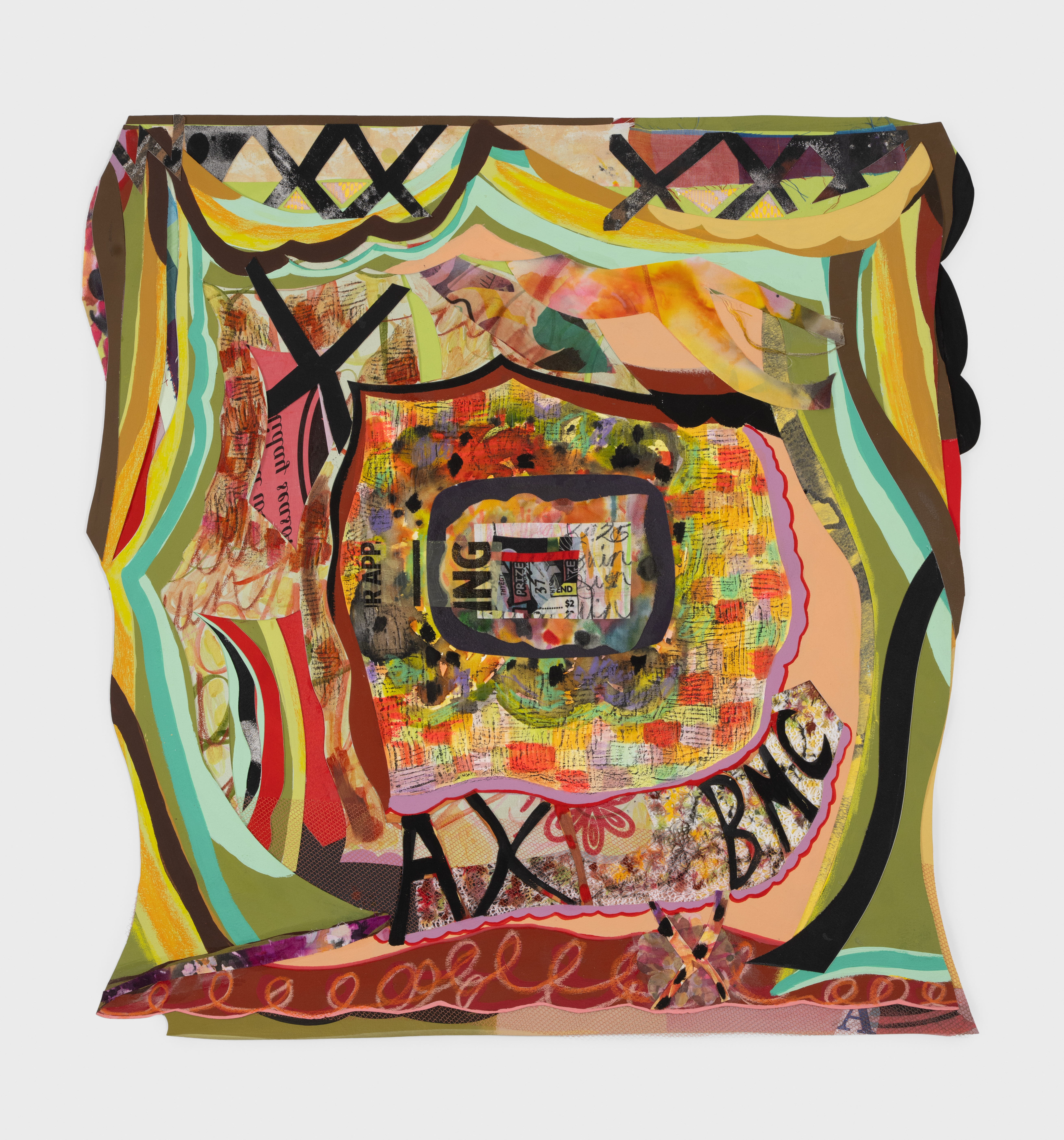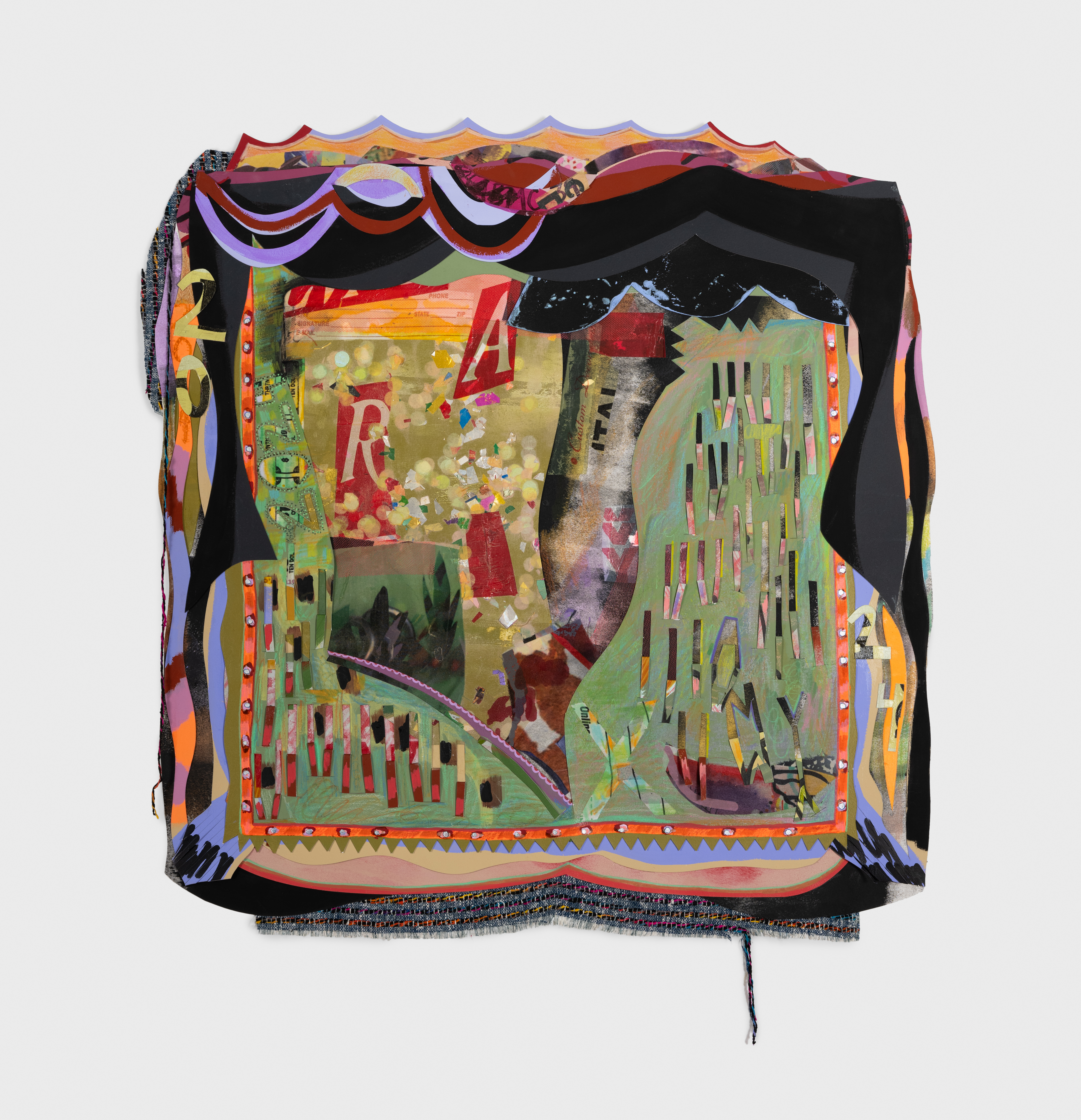 Bag (take only what you need)Bag (take only what you need) 2020 Mixed media, collage, fabric, beads on paper 35" x 22.5” x 1.5” -