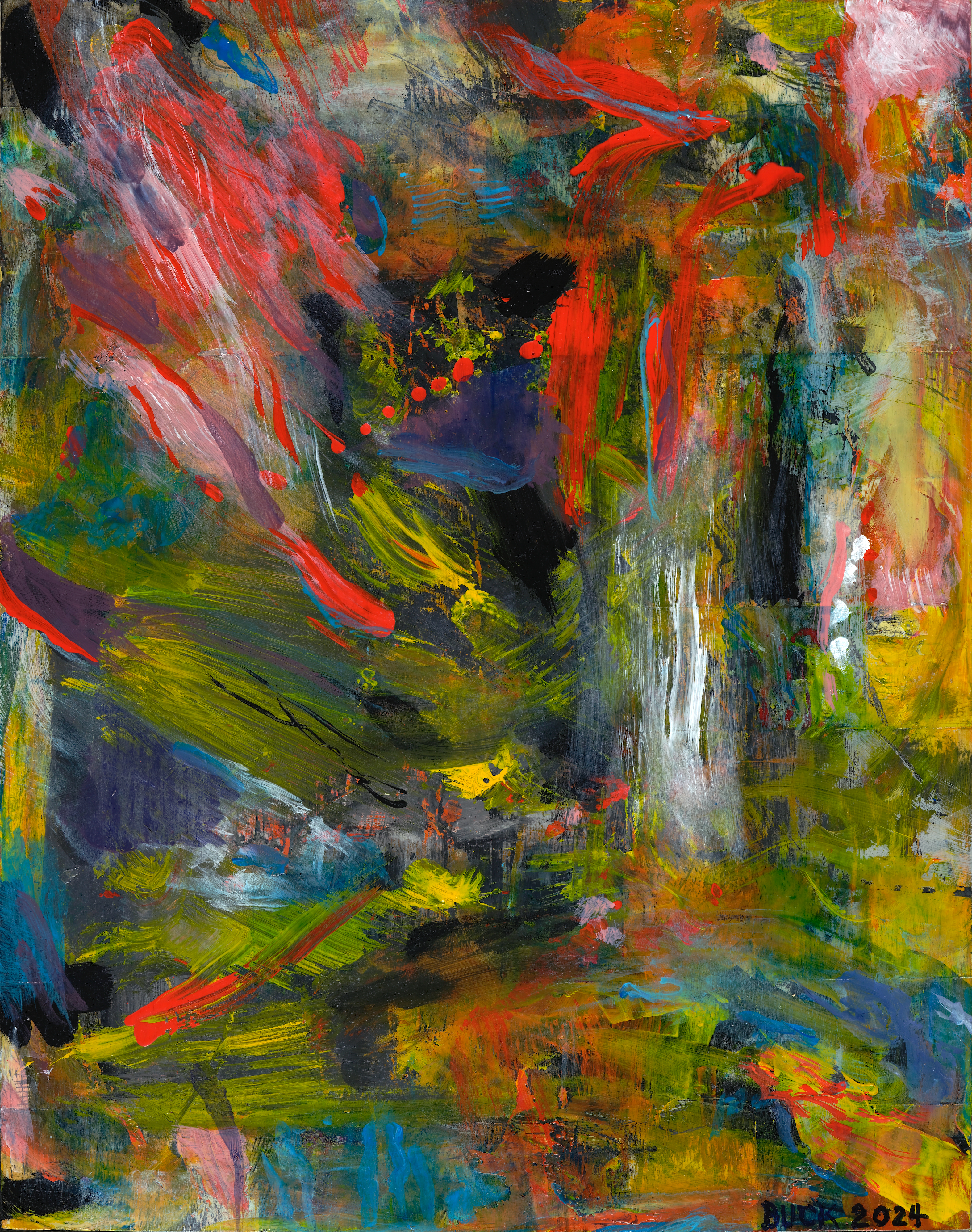 This series was created when while I was in the Corcoran Open Program working with Washington Color School artist, Leon Berkowitz. Prior working with him, I had experienced a profound emotional trauma. In working with Berkowitz I was able to bypass my conscious inhibitions to express the rage I had felt. I think that rage shows in the colors and active brush work in these paintings.