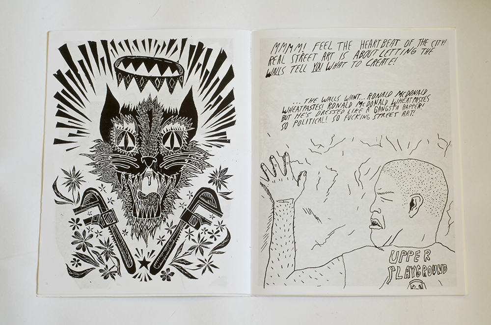 Comics Compilation featuring 8 artists with a 2 layer screen-printed cover. Contains stories of war desertion, irreverent punk humor, feminist poetry, relief illustrations and Woody Guthrie songs.