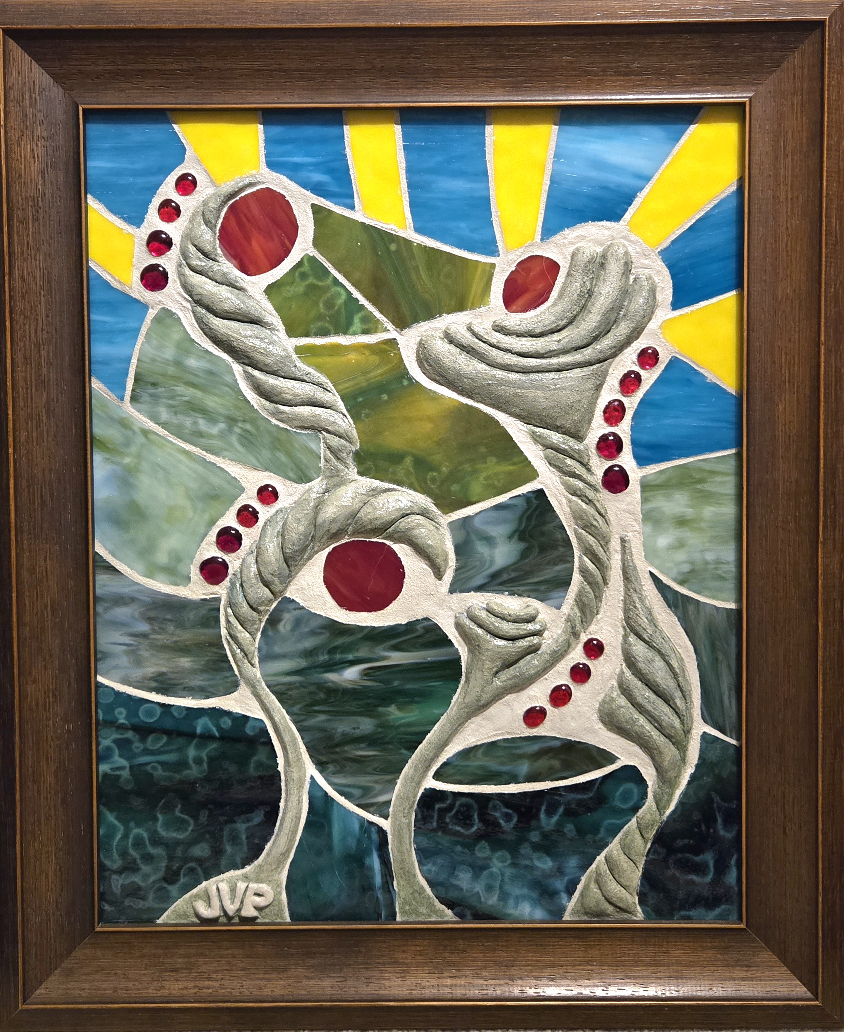 Mosaic Bas Relief - sculpted concrete, stained glass, acrylic paint. (Collection of Sharon Callahan)