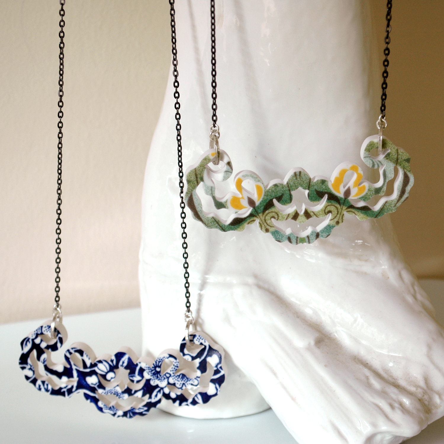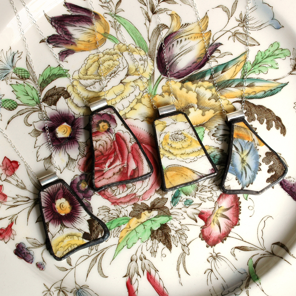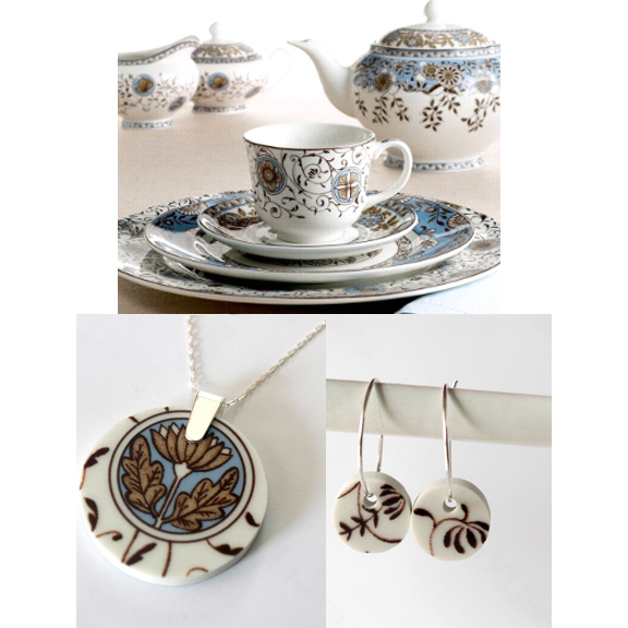 Using a variety of different processes, I turn unloved thrift store plates and broken sentimental family china into one of a kind contemporary jewelry. Recycled China Wedding Set Goddard Space Cuff Links Recycled China Jewelry Blue Willow Wedding Set Wide Rim Necklace Lace Collar Recycled China Necklace Recycled China Wedding Set Recycled China Wedding Set China Knuckles Brass knuckles made from recycled china Recycled China Wedding Set