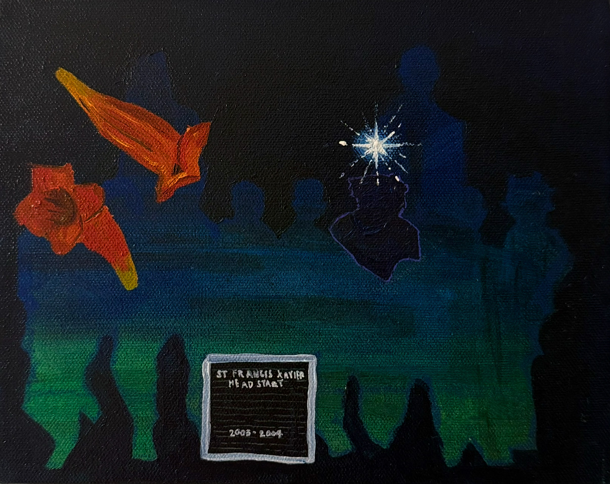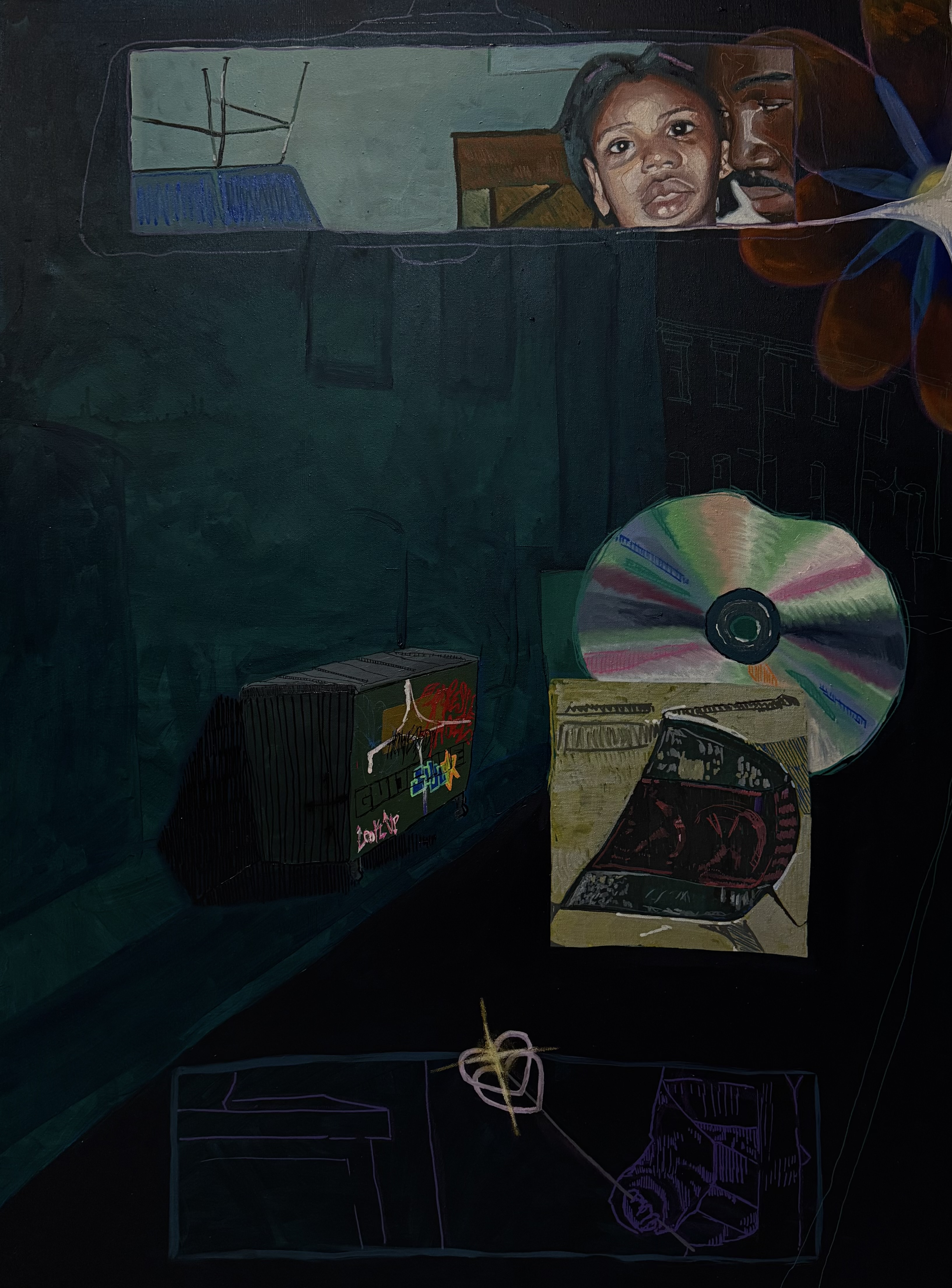 Kailah Foreman (b. 2000) is a multidisciplinary artist and educator from Baltimore, MD. Using a variety of media, including oil paint, paper/found object collage, printmaking, and drawing media to create art that channels her memories and experiences growing up in East Baltimore.
