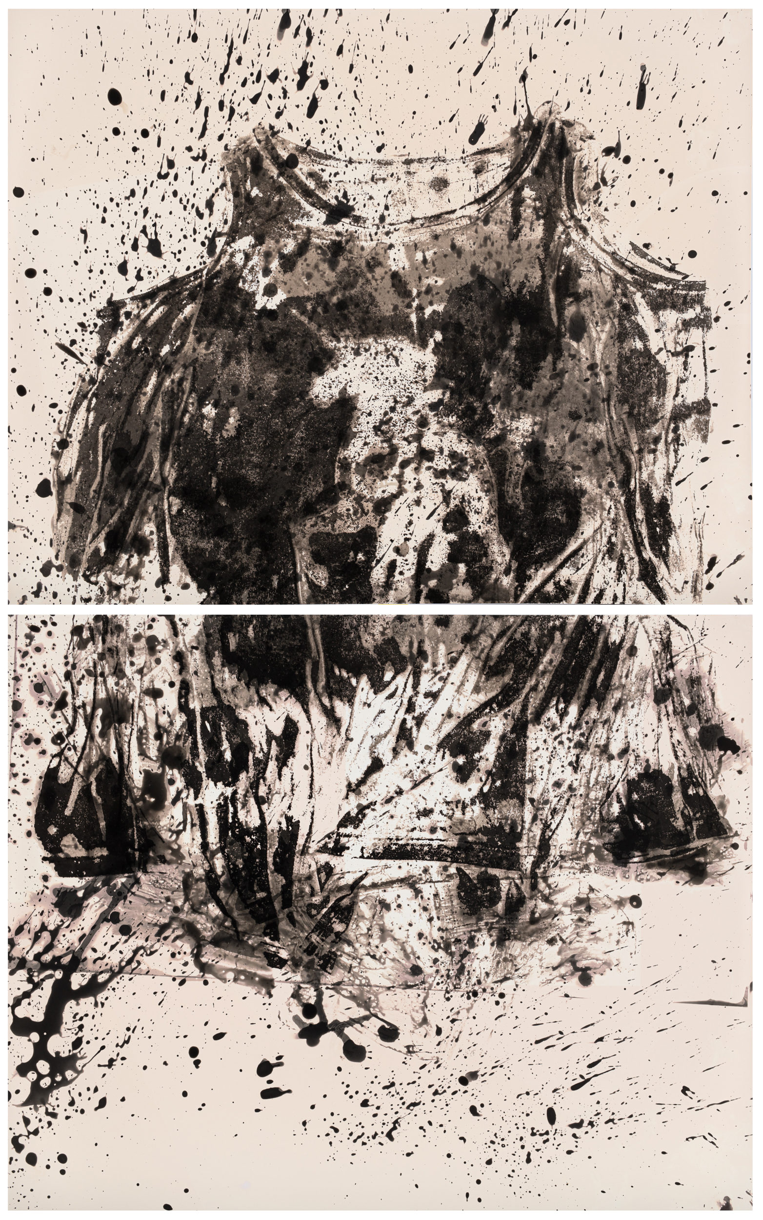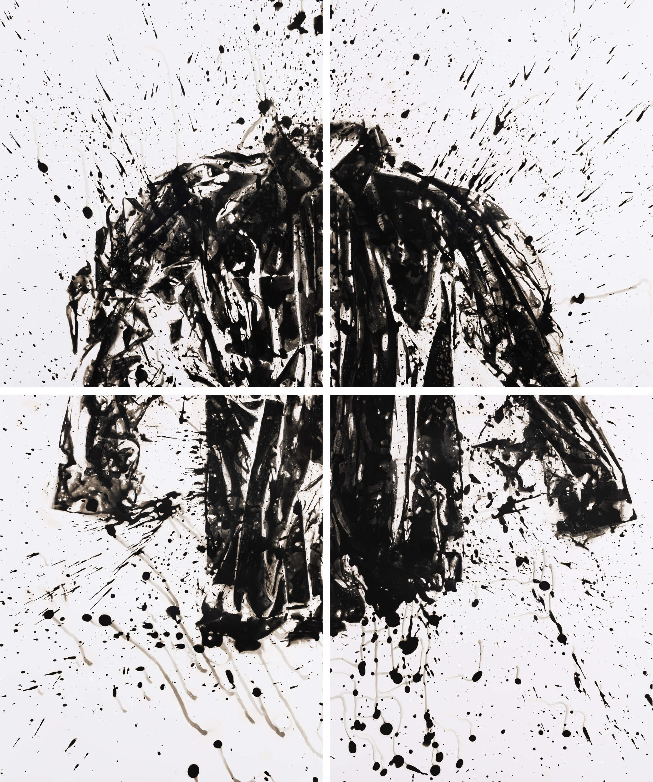 Garments such as my grandfather's shirt-owned by him in the years following his survival of the Hiroshima atomic bombing, as he later dedicated his life to peace advocacy-are soaked in developer solution and pressed directly onto photographic paper, "fixing" their presence. Their forms gradually emerge on black-and-white darkroom paper like ghostly footsteps, a transformation echoed in the accompanying video documentation. These objects, imbued with profound personal and historical significance, evoke both the fragility and persistence of memory.