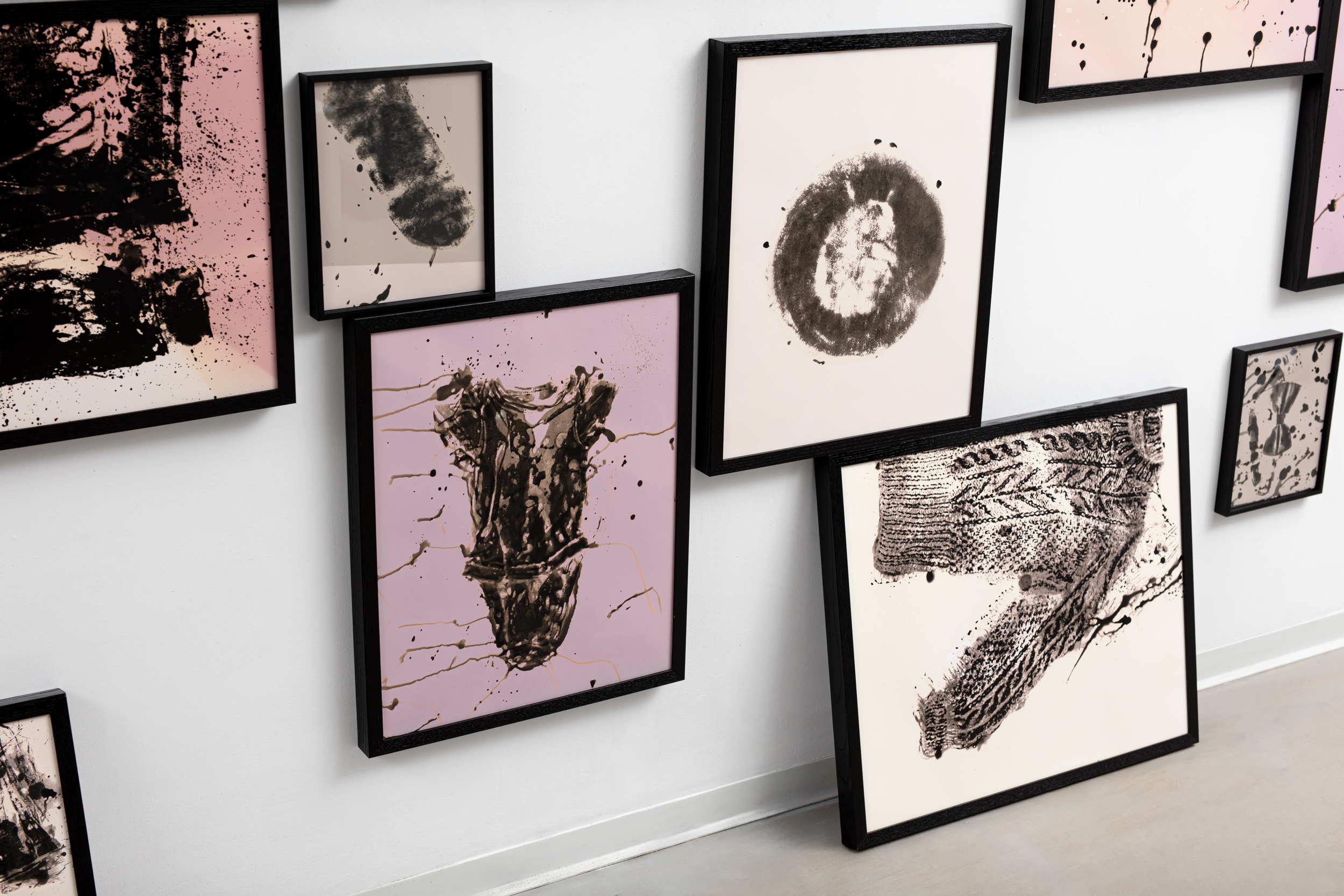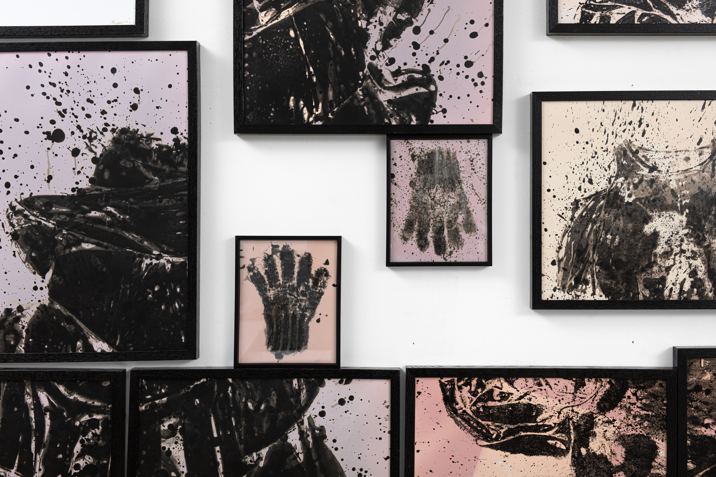 Burning Away installed at the Georgia Museum of Art, 2024Burning Away is a transformative series created through the intricate chemigram process, which merges painting and photography to push the boundaries of traditional image-making. In this work, I apply substances like honey and oils onto sun-fused silver gelatin paper, producing printed surfaces that are as tactile as they are visual. Within these images lies a profound duality, reflecting both the microscopic and vast-scale impacts of nuclear catastrophe. The prints evoke cellular structures, symbolic of the unseen yet insidious effects of radiation, while simultaneously alluding to the incomprehensible scale of total nuclear war. At the heart of Burning Away is the fragile connection between landscape and the human body, both permanently marked by radiation. When the atomic bomb detonated over Hiroshima, the fireball reached 7,700 degrees Fahrenheit—the surface temperature of the sun. The extreme heat vaporized those at ground zero and left survivors with devastating burns. Many turned to honey, cooking oil, and motor oil as makeshift treatments in the absence of medicine. Printed at human scale, Burning Away embodies the weight of nuclear devastation—on both body and land. This ongoing project invites reflection on the enduring human spirit in the face of catastrophe.