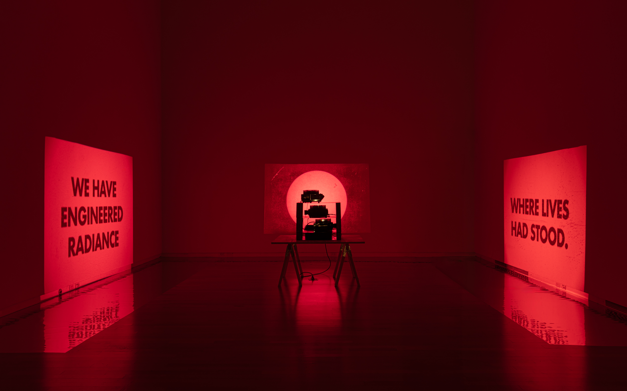 Embodied Spectrum begins with a singular moment of an individual life and expands out to consider the history of nations, the half-lives of nuclear fallout, and the deep time of the sun's energy. In the process, the work considers the weight of history on our most intimate relationships and the need to grapple with the human capacity for both creation and destruction.