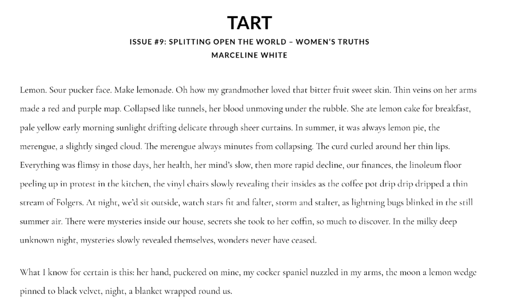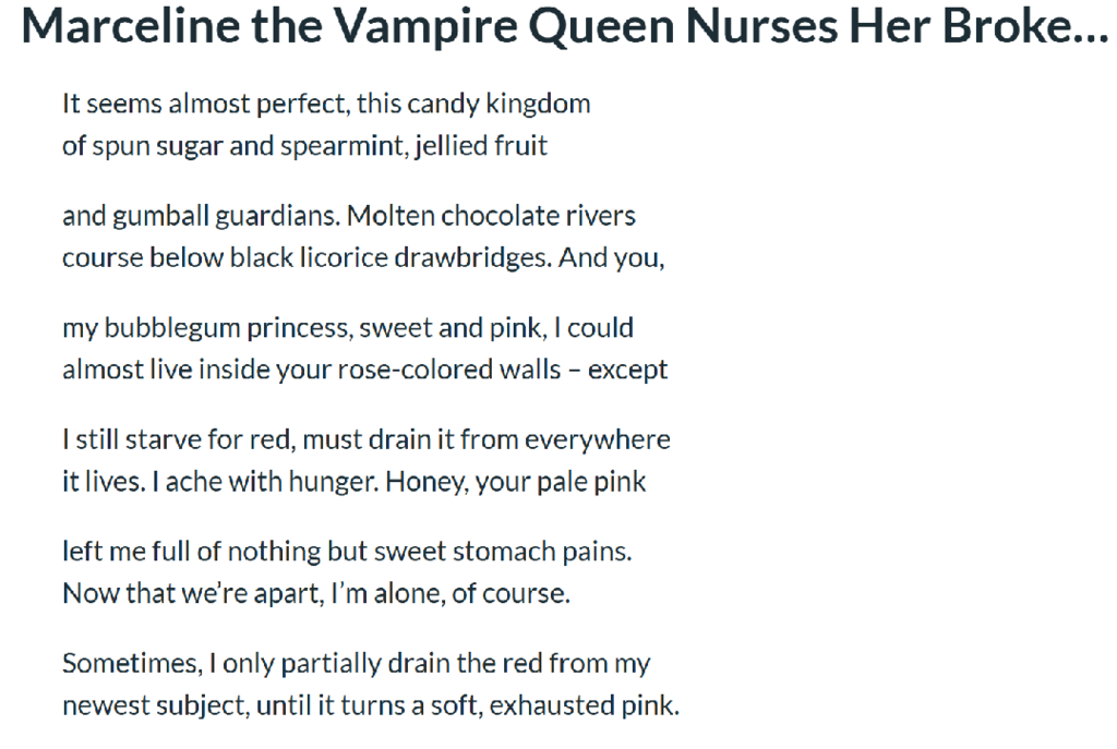 Marceline is a Baltimore-based activist, poet, and multi-genre writer. A recent two-time Pushcart Prize and Best of the Net nominee she writes about gender, place, family and dysfunction, ancestral patterns and progress, nature and the Anthropocene, food, pop culture, chronic illness, motherhood, and working-class issues. As a chronically ill single mother with a chronically ill child, many of the subjects she writes about are both personal and universal. Her cheribun poems were long-listed… more