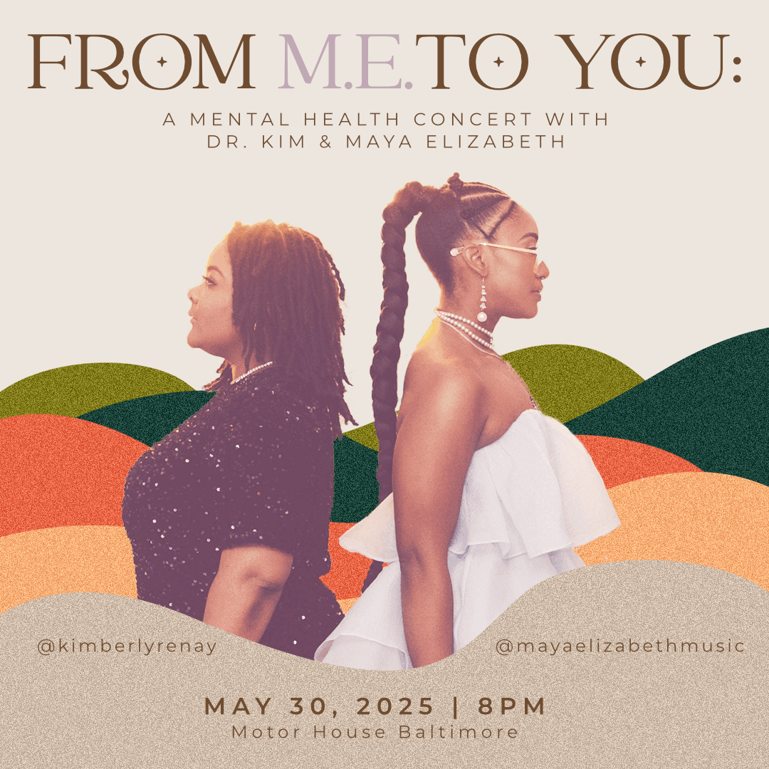 Created by inspirational-soul artist, Maya Elizabeth, and holistic therapist, Dr. Kim Mayes, LCSW, "From M.E. to You" is a mental health concert experience that promotes community, wellness, and the healing power of music. On May 30, 2025, in celebration of Mental Health Awareness Month, Maya + Dr. Kim welcomed a packed house at @motorhousebaltimore for their 3rd event in this concert series. This recap chronicles that unforgettable evening, a peek behind the scenes, and what attendees had to say about their experience.