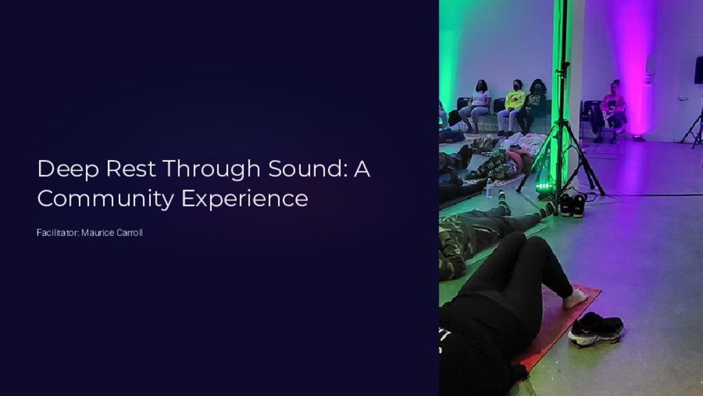 Deep Rest Through Sound is an ongoing exploration of how sustained vibration, resonance, and spatial tone affect the human nervous system and perception of time. Each session is structured as a listening environment rather than a performance, inviting participants to inhabit sound as an immersive field. The work evolves across venues and contexts, functioning as both artistic practice and research into attentive stillness.
