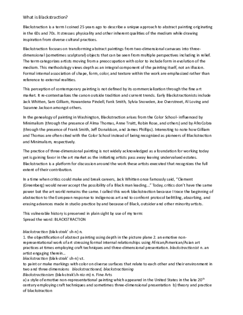 A social art project to add blackstraction to the fine art lexicon by promoting its usage through staged readings, guerilla interventions, exhibitions and documentation