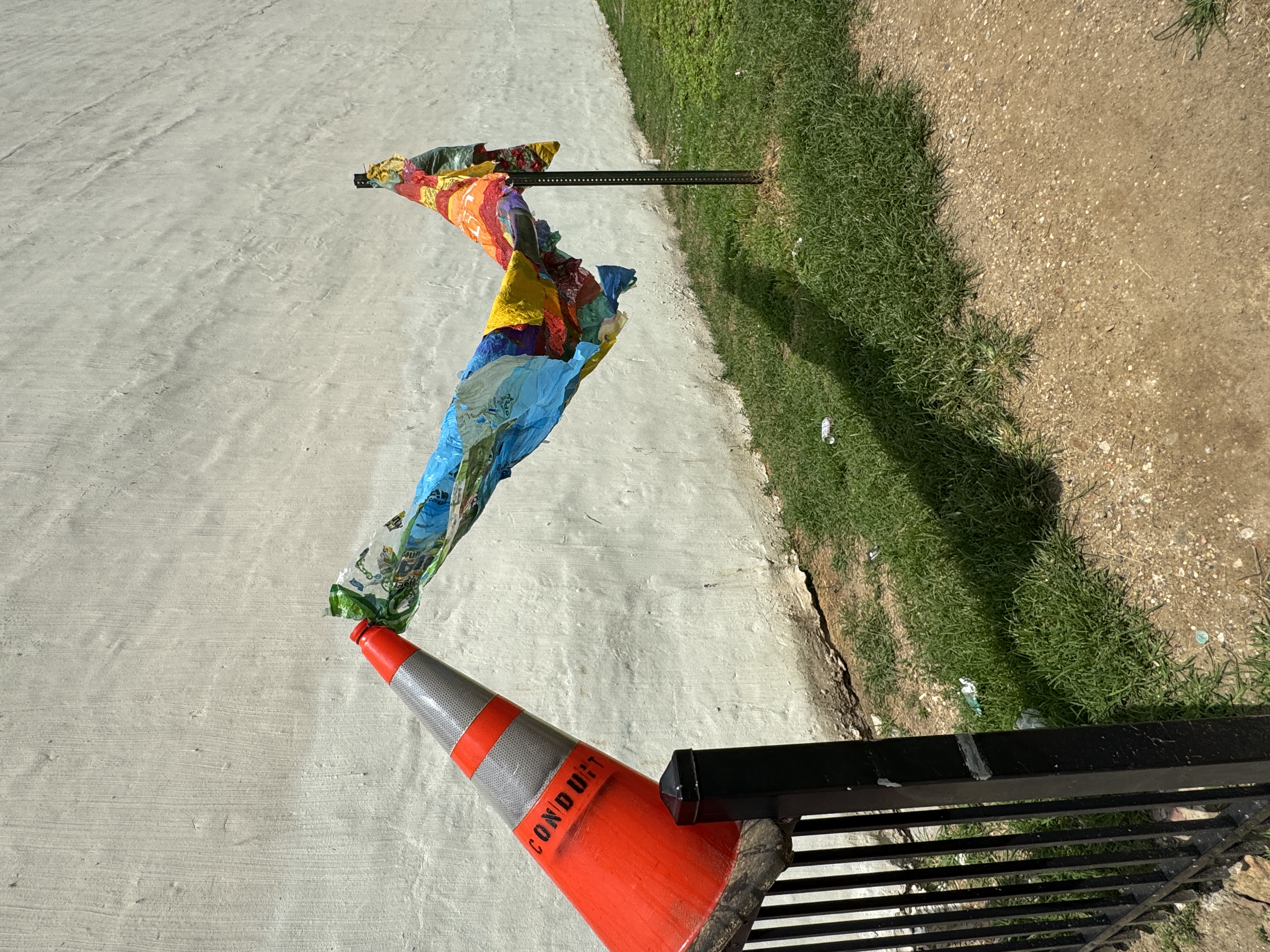 Shade Provider repurposes discarded plastics into a functional shade configuration, offering relief from heat while inviting the viewer to rethink everyday waste as objects of care. Positioned in a gallery window, the sculpture sparks conversation between inside and outside, inviting the passersby to consider the practical and playful potential of transforming discarded materials. -