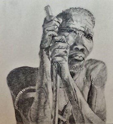 The WatchmanMedium: pencil drawing. Size: 7" X 7.5." The man in this portrait is typical of the elders who accompanied me during my coming of age ceremony in the message I received from the Dreamtime. He stayed close to me as we hunted and shouted directions and encouragement. -