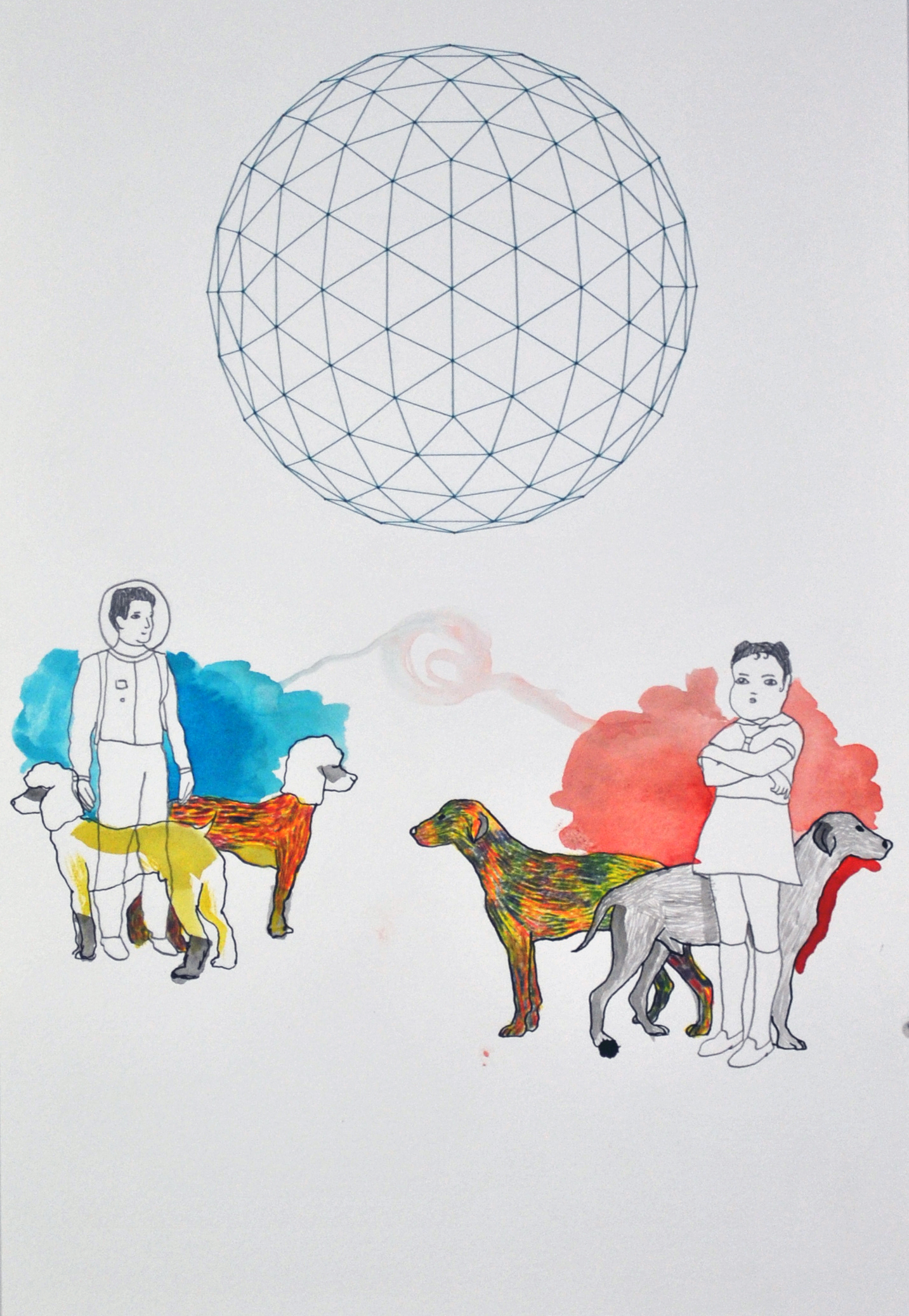 Tohl 0072010 pencil, watercolor, and thread on paper 35cm x 28cm Artists: Rich Tu, Shannon Rankin, and Sidney Pink -