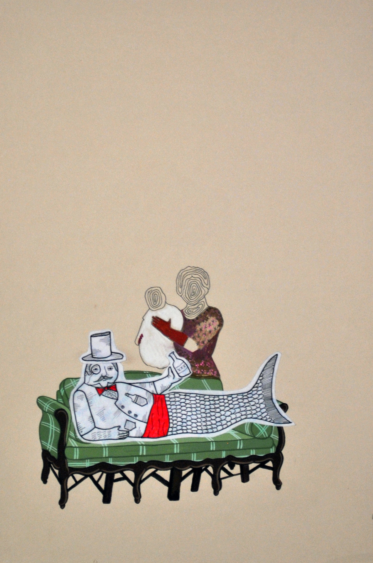 ghost family (Tohl 014)2010 pencil, acrylic and collage on paper 22cm x 28cm Artists: Alyson Fox, Micheal Hsiung, and Sidney Pink -