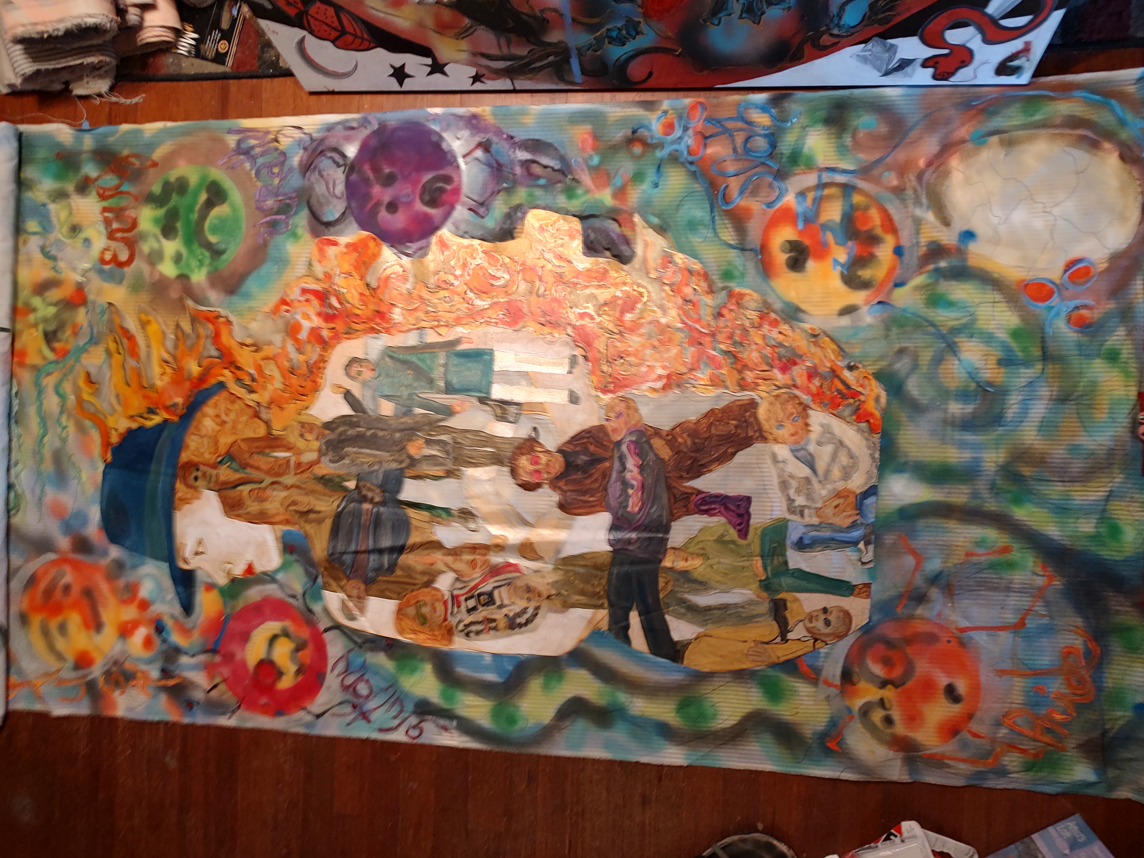 On FIREOn FIRE 2021 5'x9' spray paint/acrylic/oils raw canvas -