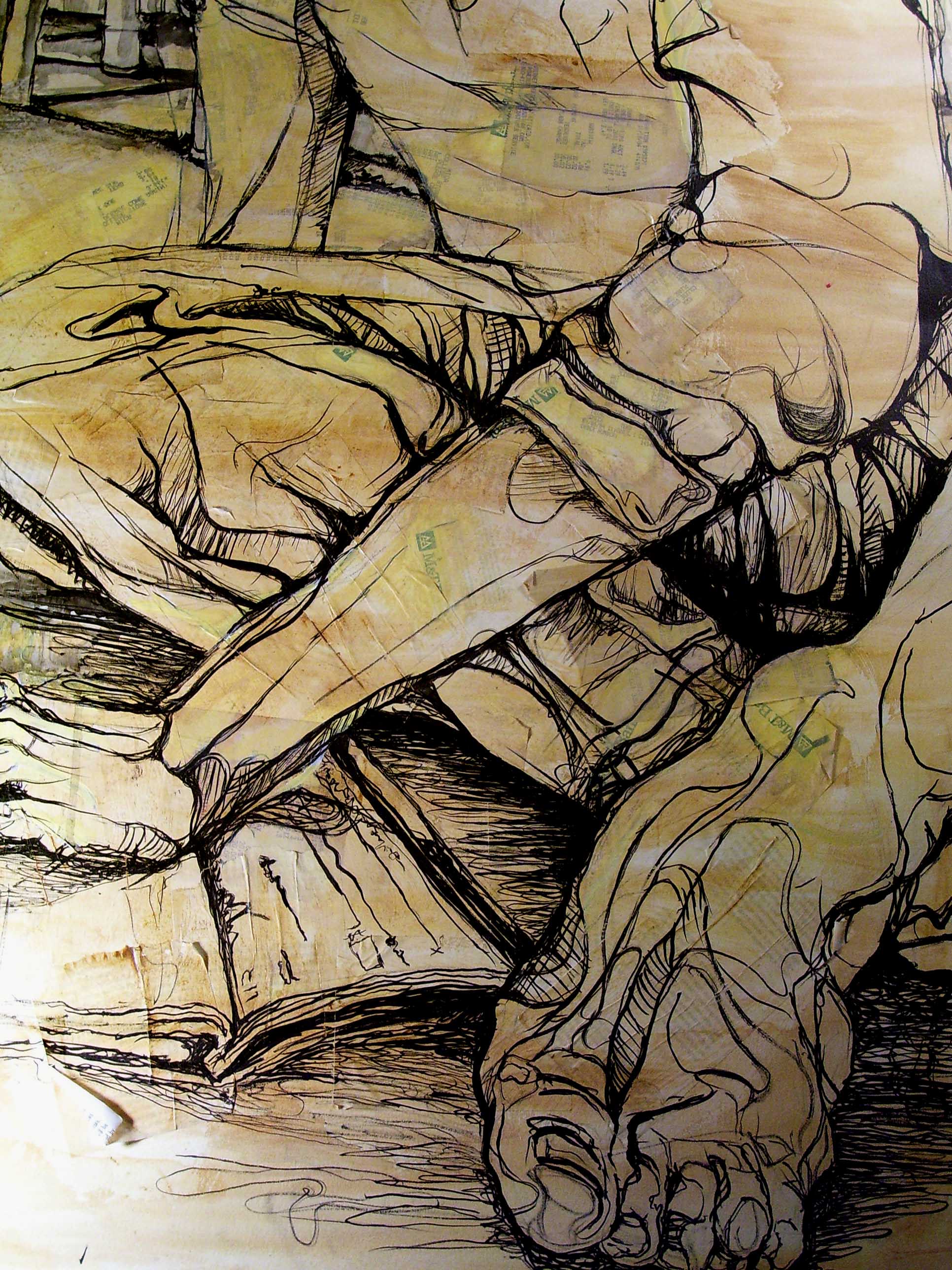 Line DrawingMedia: Ink, Acrylic Paint, Collage Material/ Size: 1'5" X 2'5" -