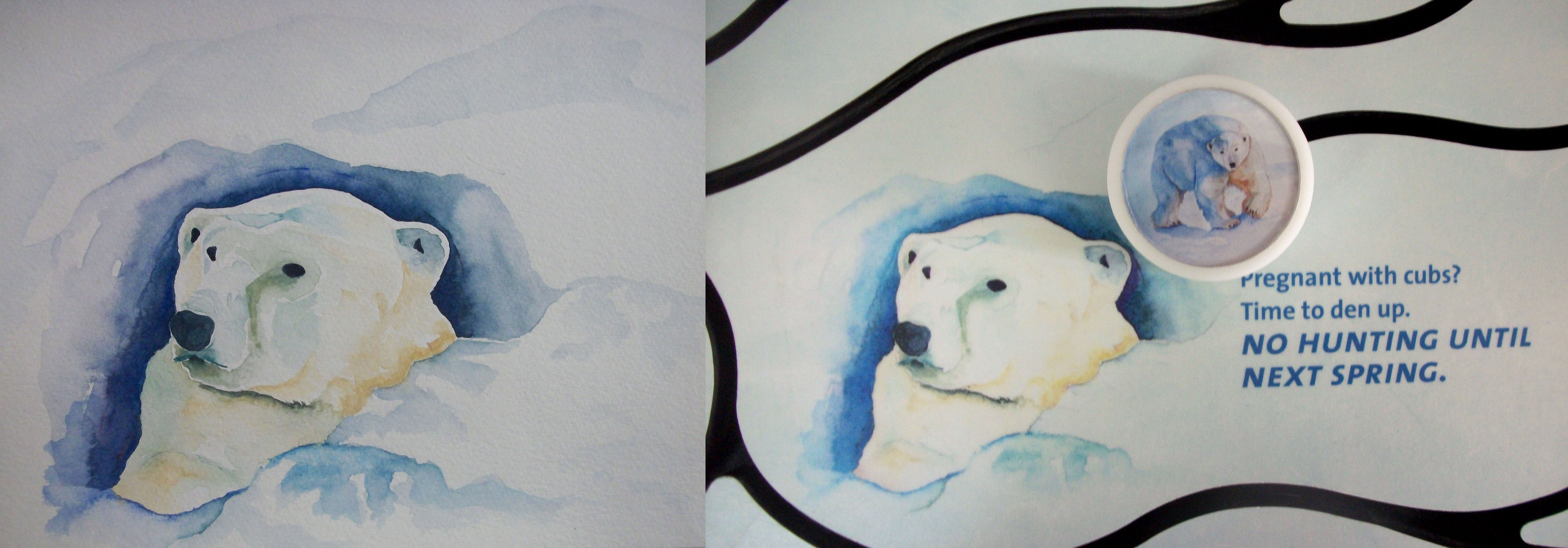 I worked with a design company to create illustrations for an education interactive, which was permanently installed for visitors to use while learning about the lives of polar bears at the Maryland Zoo in Baltimore. The maze challenges visitors to help a polar bear catch a seal. I created eight illustrations displayed throughout the maze as visual representations of the challenges of hunting.