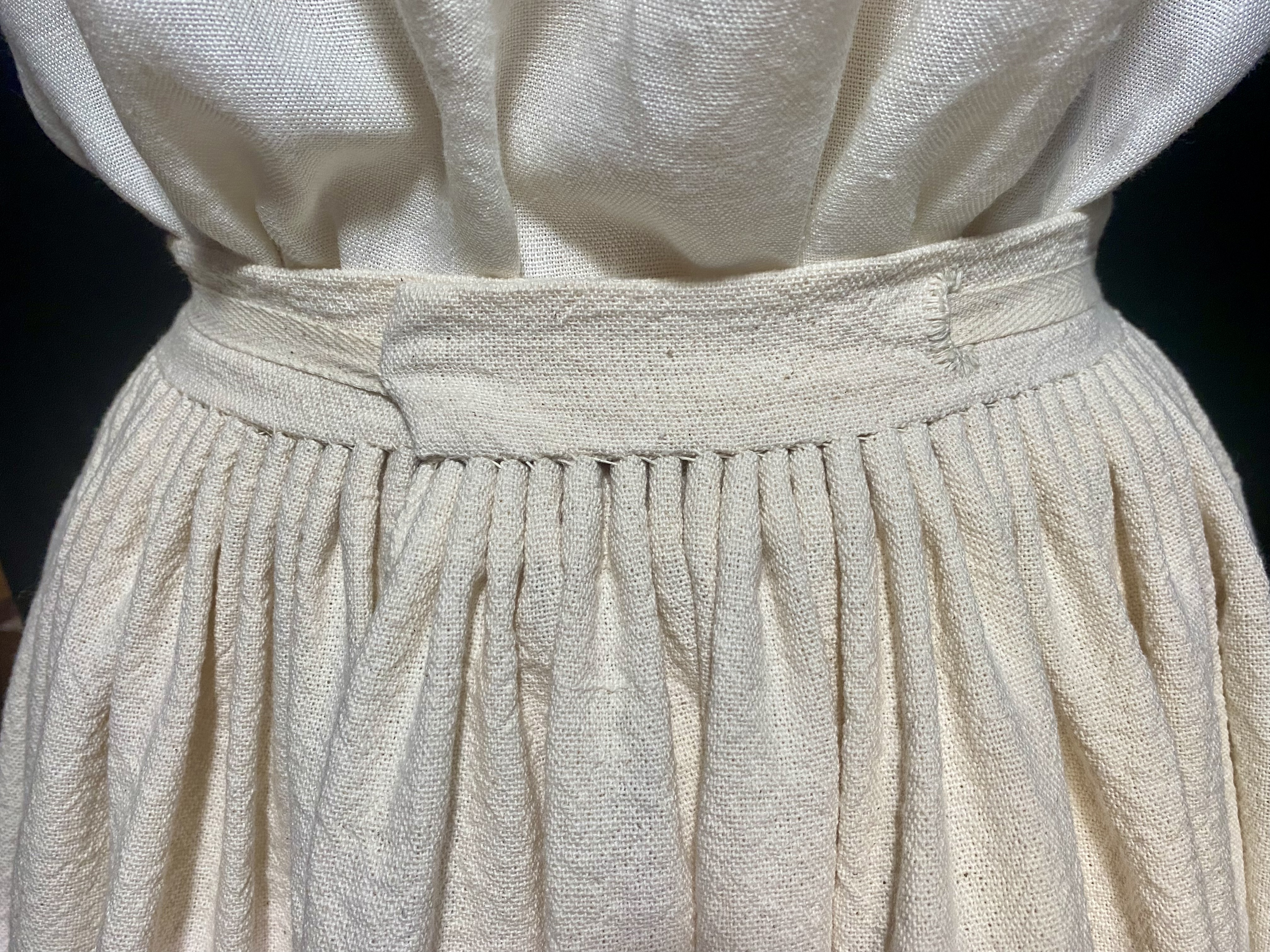 Chemise and Petticoat detailDetail of the back waistband and cartridge pleating of the petticoat into the waistband.