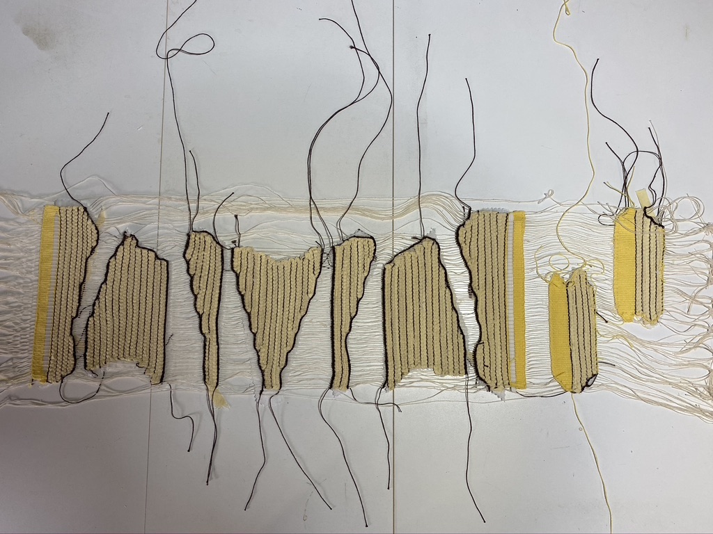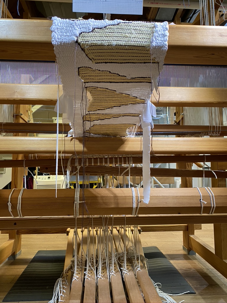 On the loomWeaving the coffee pot with voided sections to allow for pulled warp -