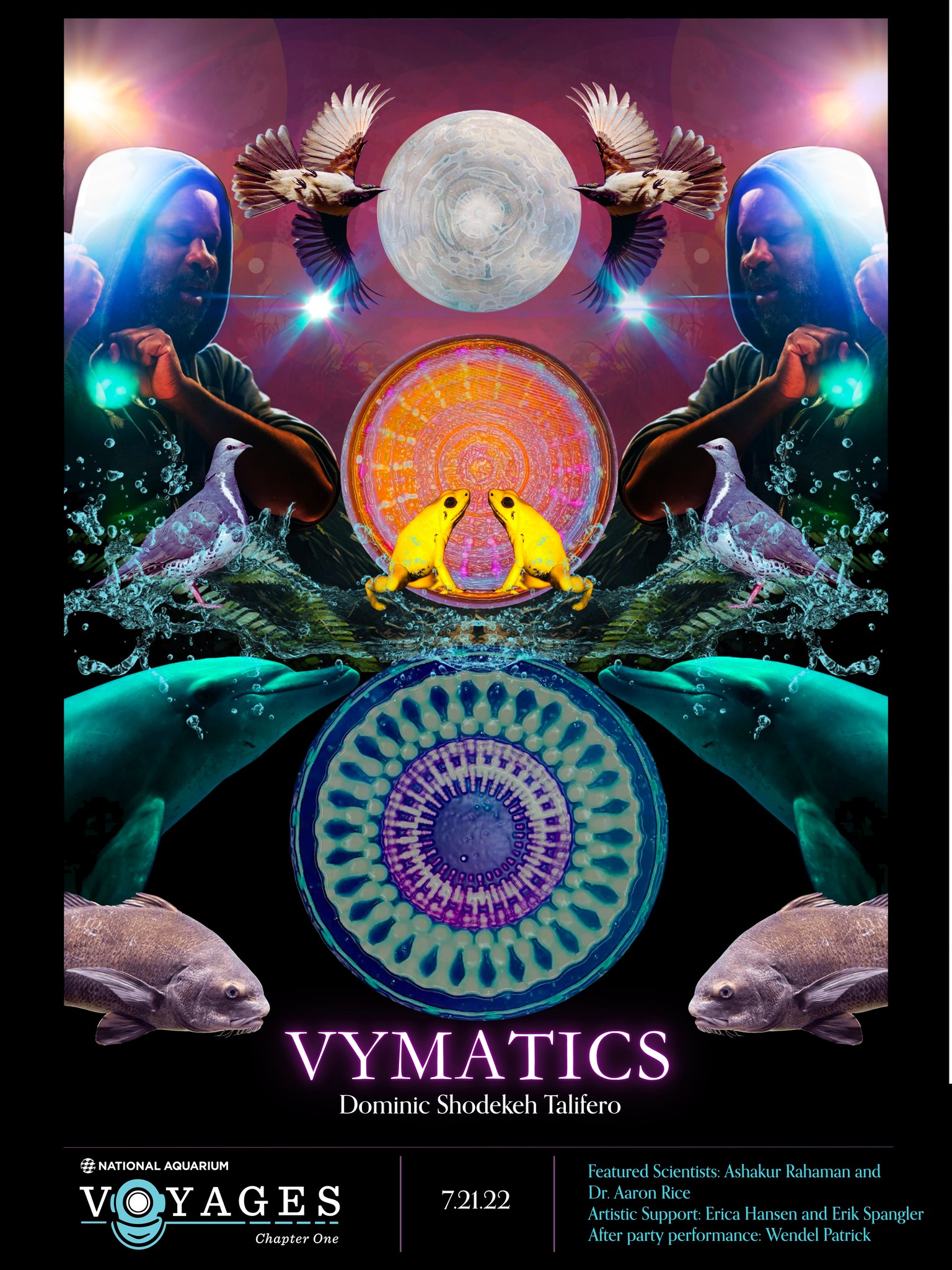 Shared Science Communication: "Vymatics" for "Voyages: Chapter 1" composed by Shodekeh for The National Aquarium. Recorded at the Maryland Institute College of Art Sound Art Program. Screening @ The Towson University Planetarium, 2023.