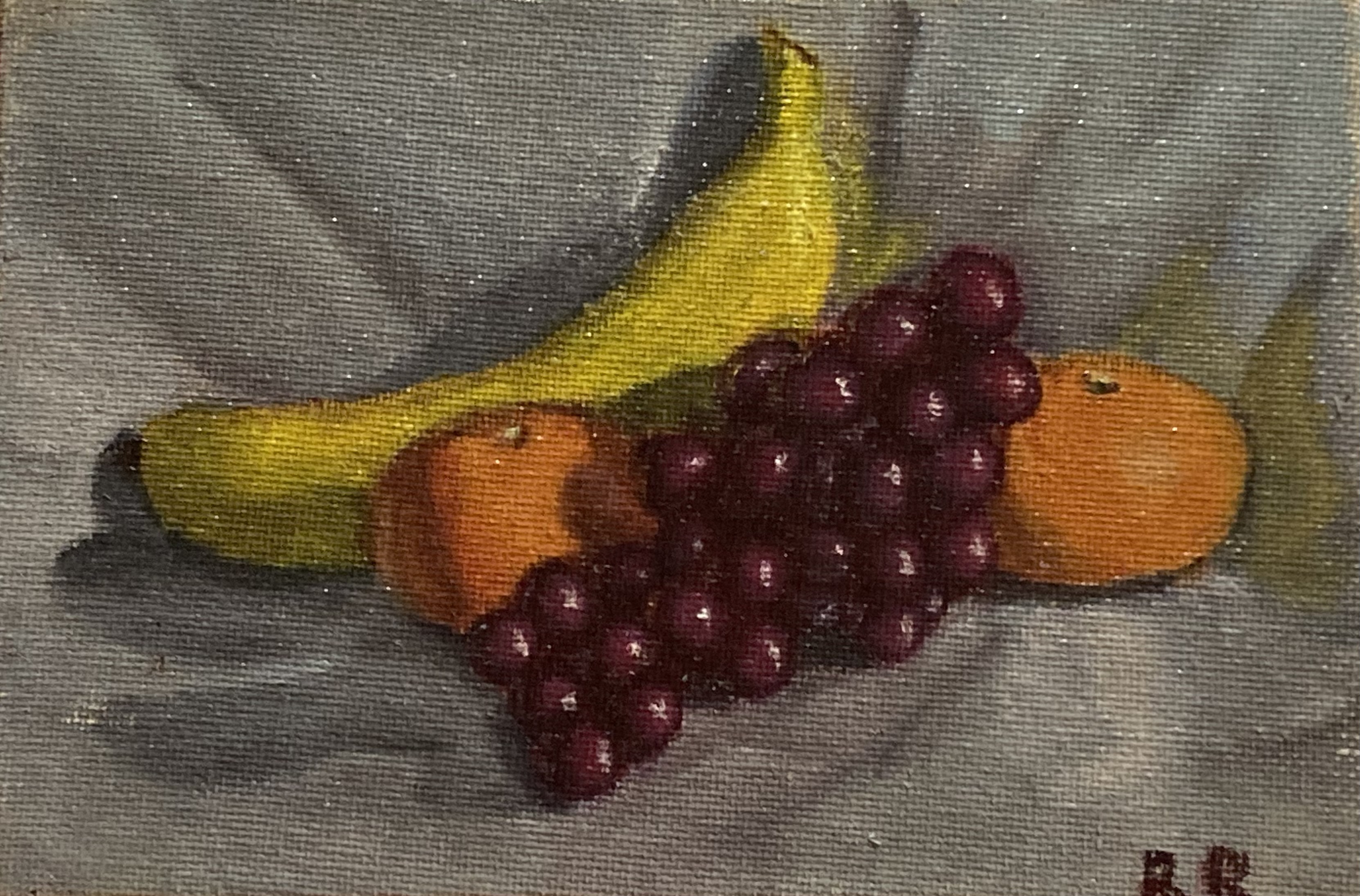 Fruits: Banana, Grapes, & OrangesMedium: Oil on Canvas